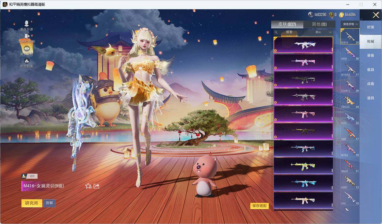 AKM-甜心宝贝,AKM-炫紫旋律,AKM-绿萝繁花,AKM-魔法神域,AKM-幽焰骑士,M16A4-垂柳戏鸭,M16A4-晶梦幻蝶,SCAR-L-梦幻火箭,SCAR-L-童趣迷兔,SCAR-L-纯梦嫁纱,SCAR-L-时空协奏,SCAR-L-金蛇镇世,M416-五爪金龙,M416-心之恋语,M416-超新星,M416-电玩时刻,M416-墨龙九天,M416-女娲灵识,GROZA-香水柠檬,GROZA-焦糖拿铁,GROZA-精灵之光,GROZA-镜光银凌,AUG-星之彼岸,AUG-星梦奇缘,AUG-暖羊咩咩,M762-甜蜜誓约,M762-青锋波束,蜜獾-辉耀战甲,UZI-绮梦青鸾,UMP45-雪国精灵,UMP45-相思残雪,UMP45-玉魂晶魄,UMP45-量子极限,Vector-红伞翩翩,Vector-飒粉甜心,汤姆逊-怪笑疯兔,AKS-74U-信仰神谕,P90-甜蜜草莓,P90-仙履奇缘,P90-沙丘之主,Kar98K-伏魔团,Kar98K-巳巳如意,Kar98K-圣域龙灵,M24-星之信仰,M24-镜域双华,AWM-花间之火,AWM-橘柚倾心,VSS-烈焰拳霸,Mini14-绚金瑰梦,Mk14-闲梦青缨,Mk14-精灵梦叶罗丽,Mk14-盛世惊鸿,SLR-暗夜玫瑰,AMR-炫光之旅,M417-第五大道,M200-梦海之灵,SVD-月影灵韵,S12K-海渊国主,SPAS-12-音爆索尼克,M249-古战神甲,M249-彩虹甜喵,DP-28-暗夜鎏金,DP-28-圣堂之誓,DP-28-千金淑猫,MG3-洛神天依,PKM-江南烟雨,MG-36-幻梦之森,爆炸猎弓-拳皇·狂花道,平底锅-林间仙鹿,平底锅-仲夏莫吉托,烟雾弹-猫咪绅士,破片手榴弹-粉粉猫爪