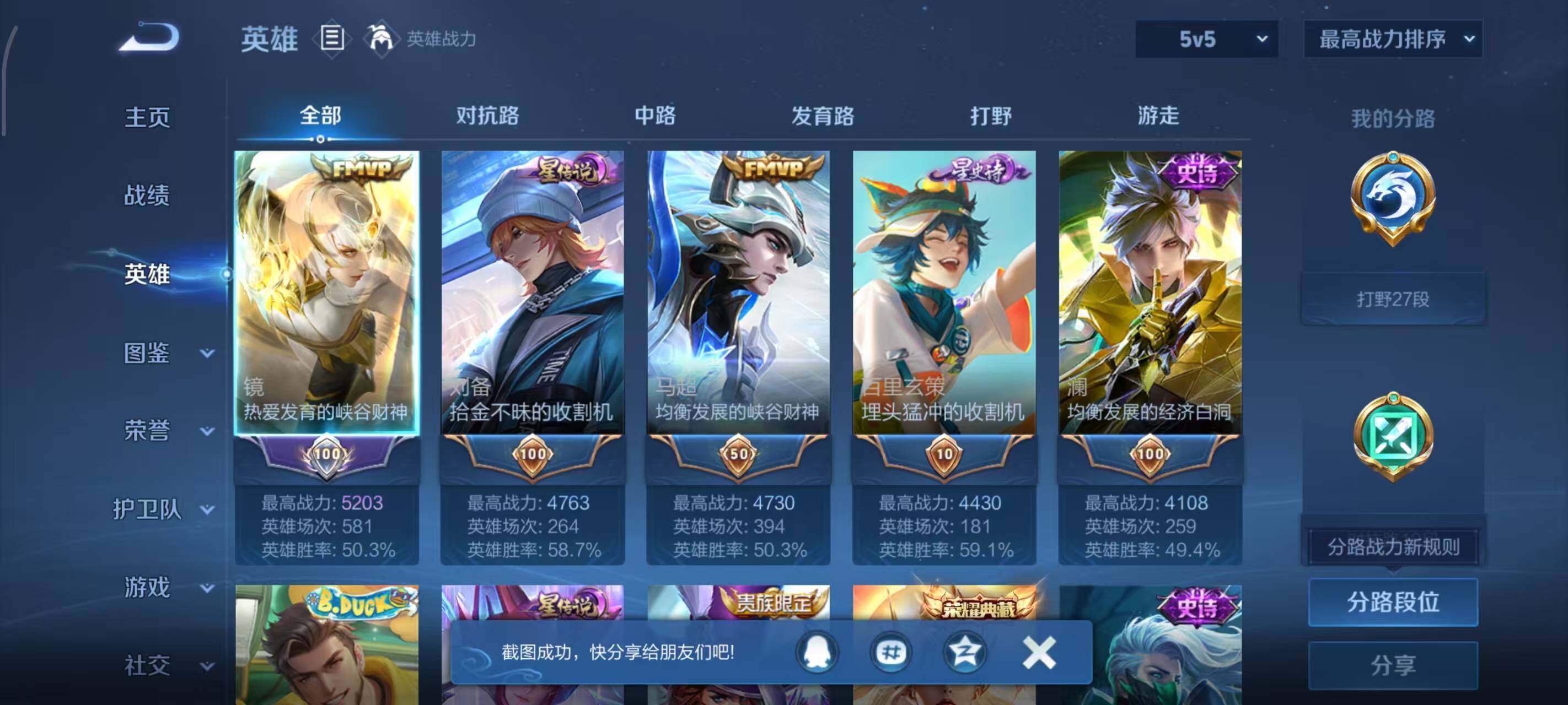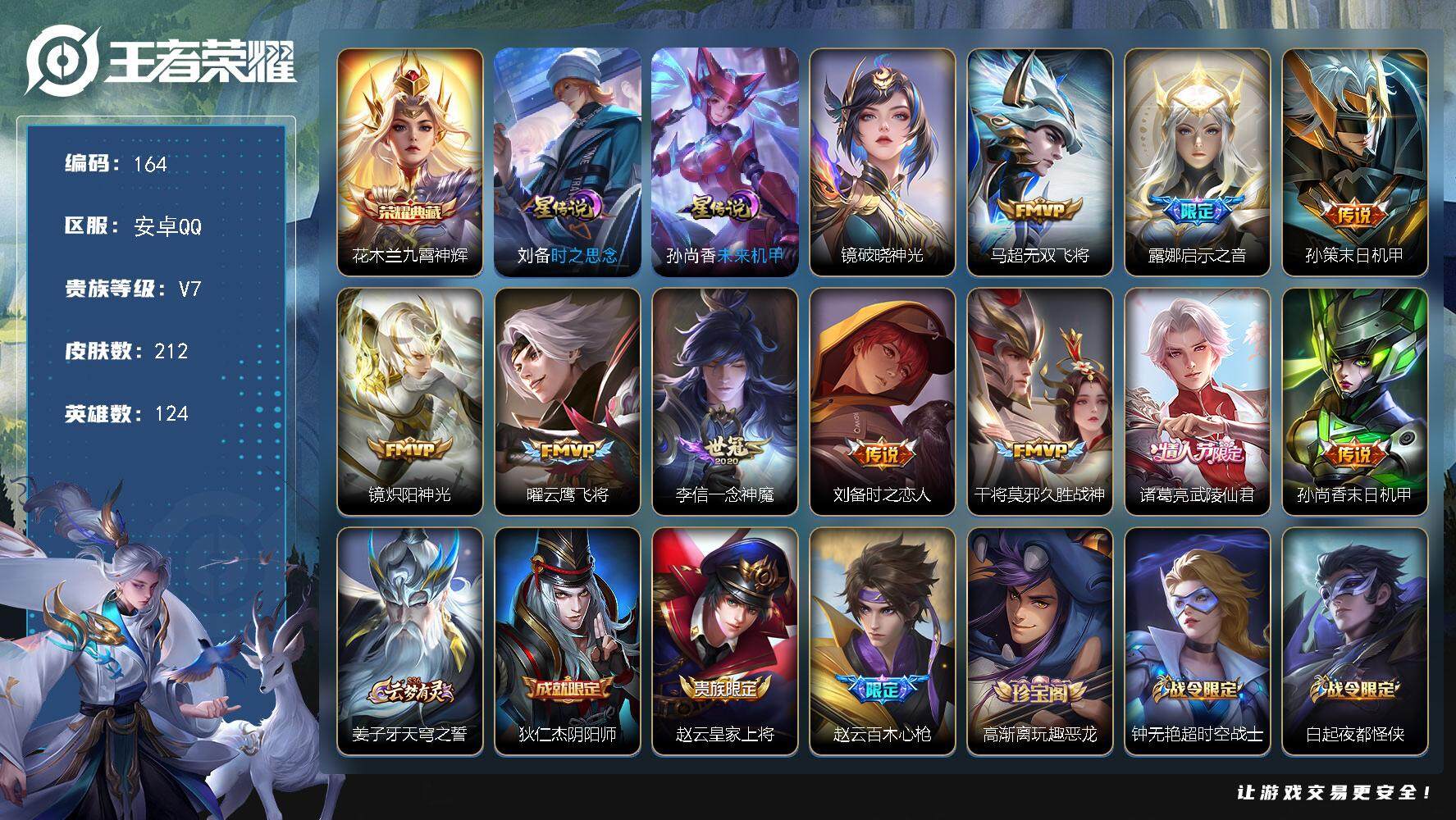[13865227]安卓Q-V7-至尊星耀III段位-124英雄-212皮肤-1典藏-0珍品无双-0无双-0珍品传说-10传说-56史诗
