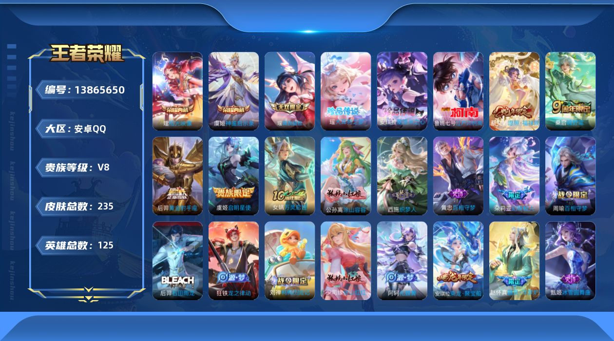 [13865650]安卓Q-V8-235皮肤-2典藏-1无双-3珍品传说-5传说-62史诗