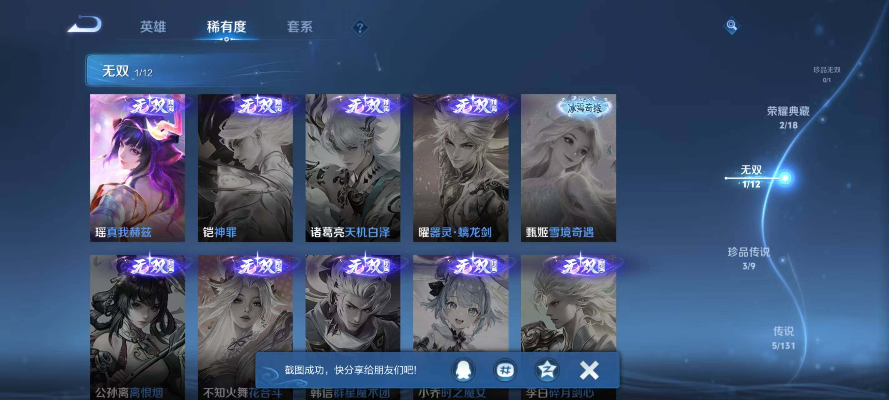 【英雄全皮】:孙权全皮,空空儿全皮,影全皮,少司缘全皮