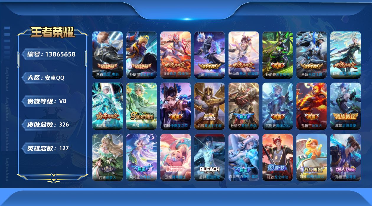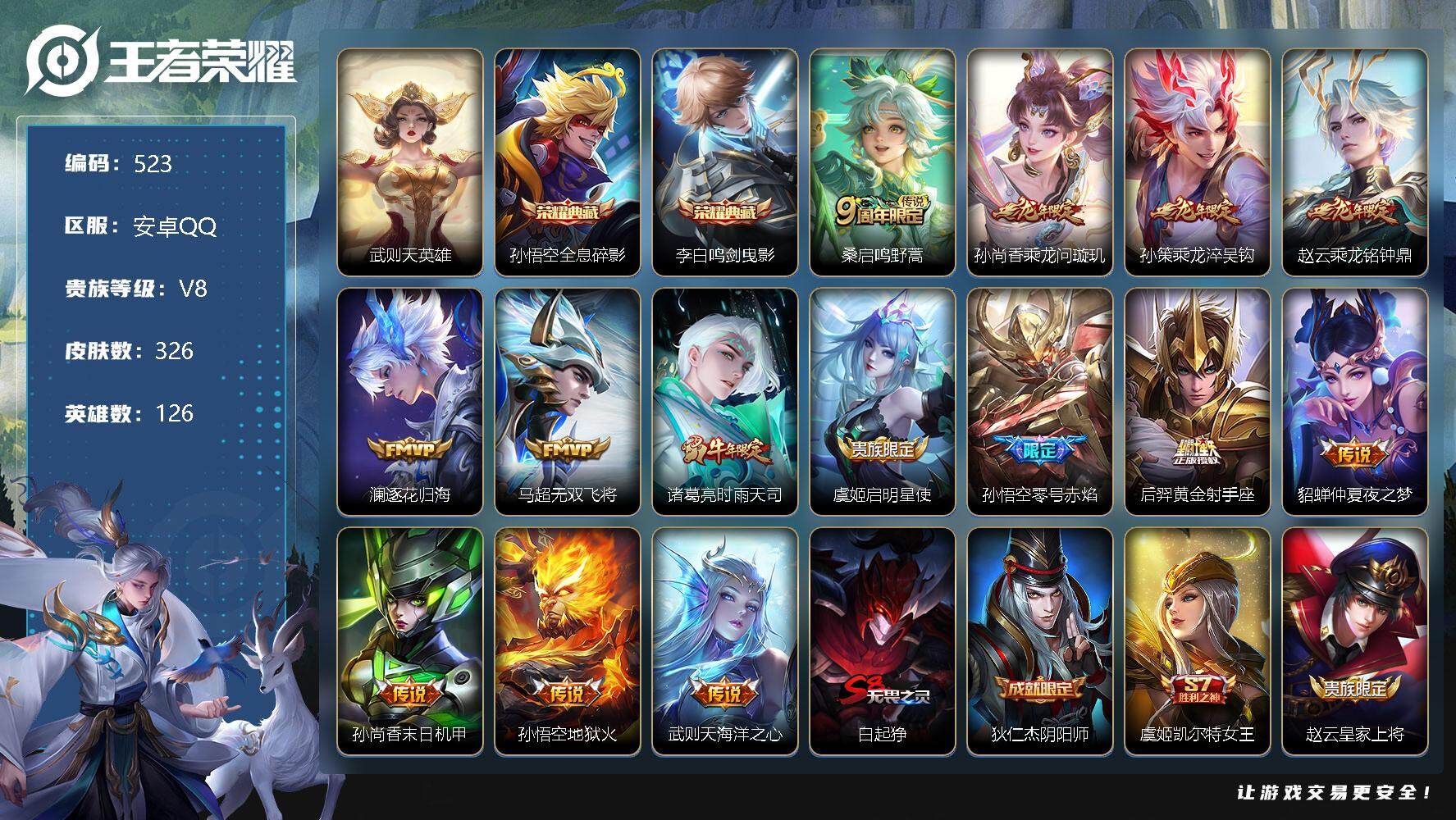 [13865658]安卓Q-V8-至尊星耀II段位-126英雄-326皮肤-2典藏-0-14传说-87史诗