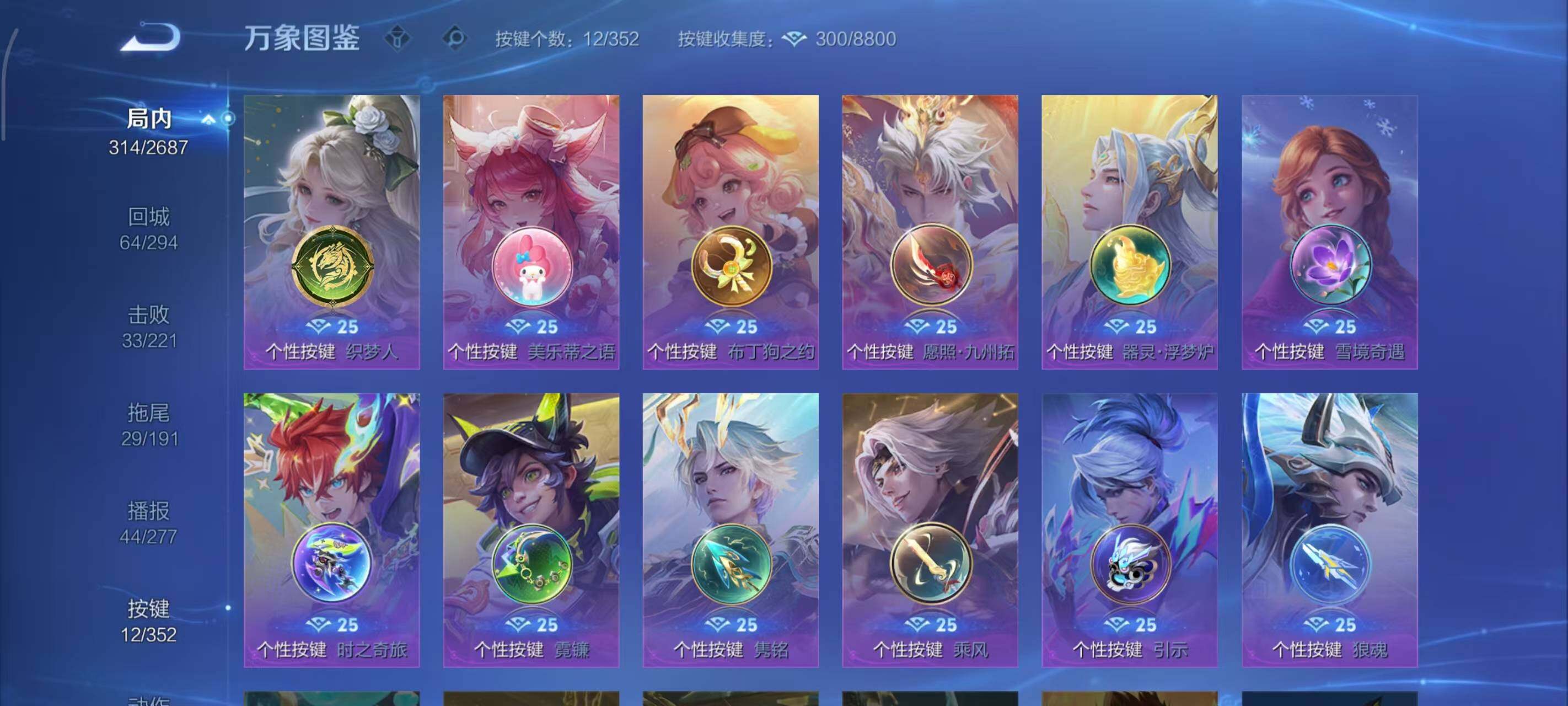 盾山御銮,夏侯惇朔风刀,明世隐疑决卦,老夫子醍醐杖,鬼谷子原初探秘者,钟馗驱傩正仪,苏烈千军破阵,李元芳银河之约,马可波罗暗影游猎,元歌云间偶戏,达摩沙漠行僧,兰陵王金庭之子,沈梦溪大漠名商,李元芳云中旅人,桑启海盐诗旅,裴擒虎擒涛扼浪,鲁班大师探海日志,张良古海寻踪,项羽苍威无极,镜青焰无极