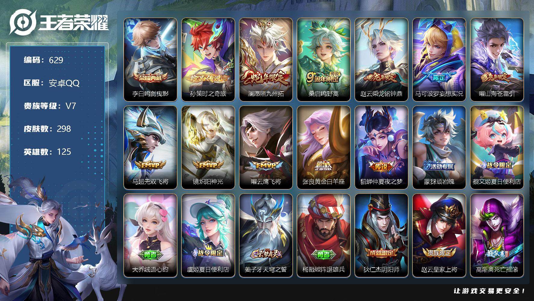 [13865963]安卓Q-V7-最强王者段位-125英雄-298皮肤-1典藏-0珍品无双-0无双-1珍品传说-10传说-79史诗