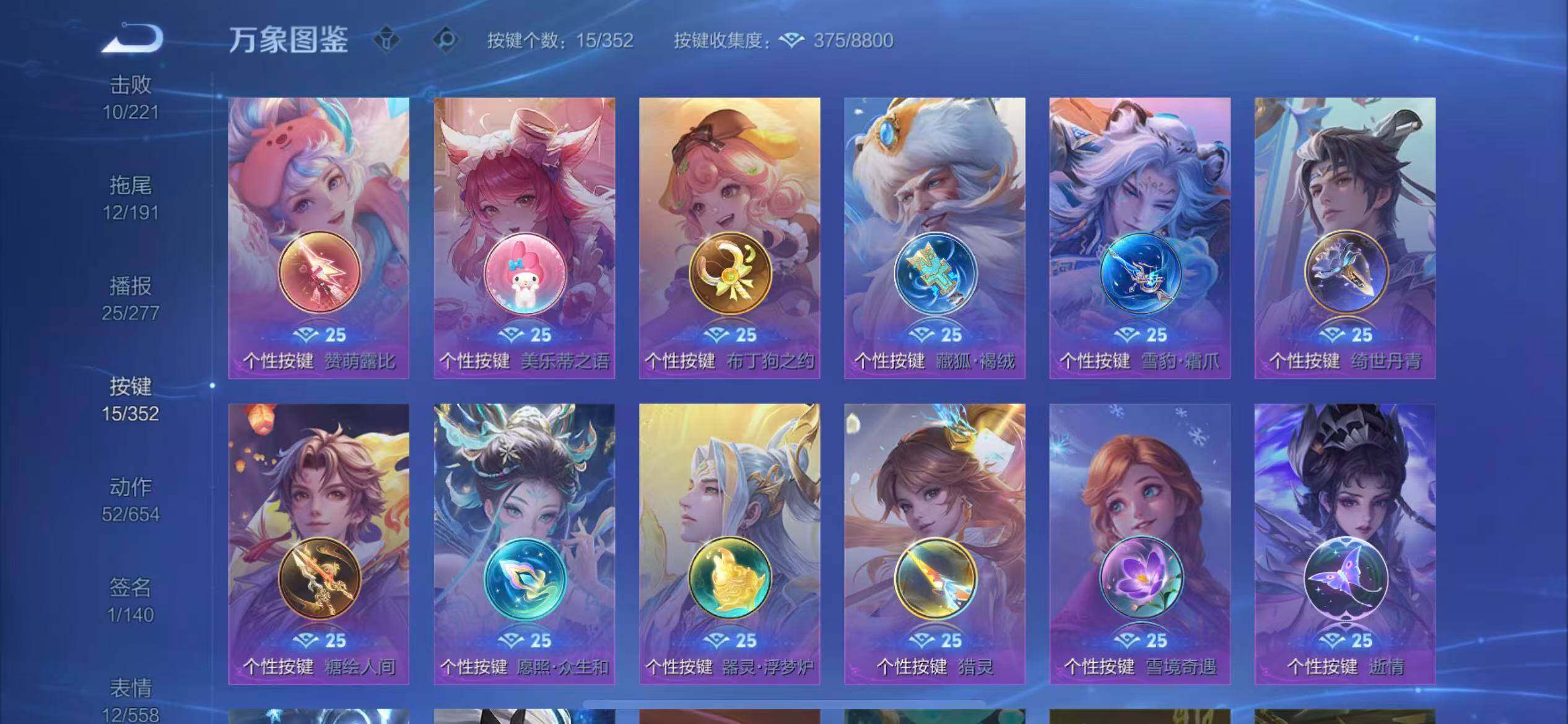 娜可露露晚萤,李元芳逐浪之夏,不知火舞魅语,大乔猫狗日记,阿轲节奏热浪,露娜紫霞仙子,诸葛亮黄金分割率,王昭君偶像歌手,项羽苍穹之光,吕布末日机甲,蒙犽龙鼓争鸣,橘右京修罗,嬴政摇滚巨星,白起星夜王子,刘邦德古拉伯爵,兰陵王暗隐猎兽者,曹操幽灵船长,宫本武藏鬼剑武藏,亚瑟心灵战警,蔡文姬舞动绿茵,廉颇地狱岩魂,小乔缤纷独角兽,夏侯惇乘风破浪,铠曙光守护者,墨子金属风暴,吕布圣诞狂欢,貂蝉圣诞恋歌,百里守约特工魅影,嬴政暗夜贵公子,嫦娥拒霜思,夏洛特永昼,蒙犽百解令,周瑜雪夜绮愿,高渐离燃音魔法,伽罗琥珀纪元,赵怀真器灵·浮梦炉,亚连糖绘人间,狄仁杰绮世丹青