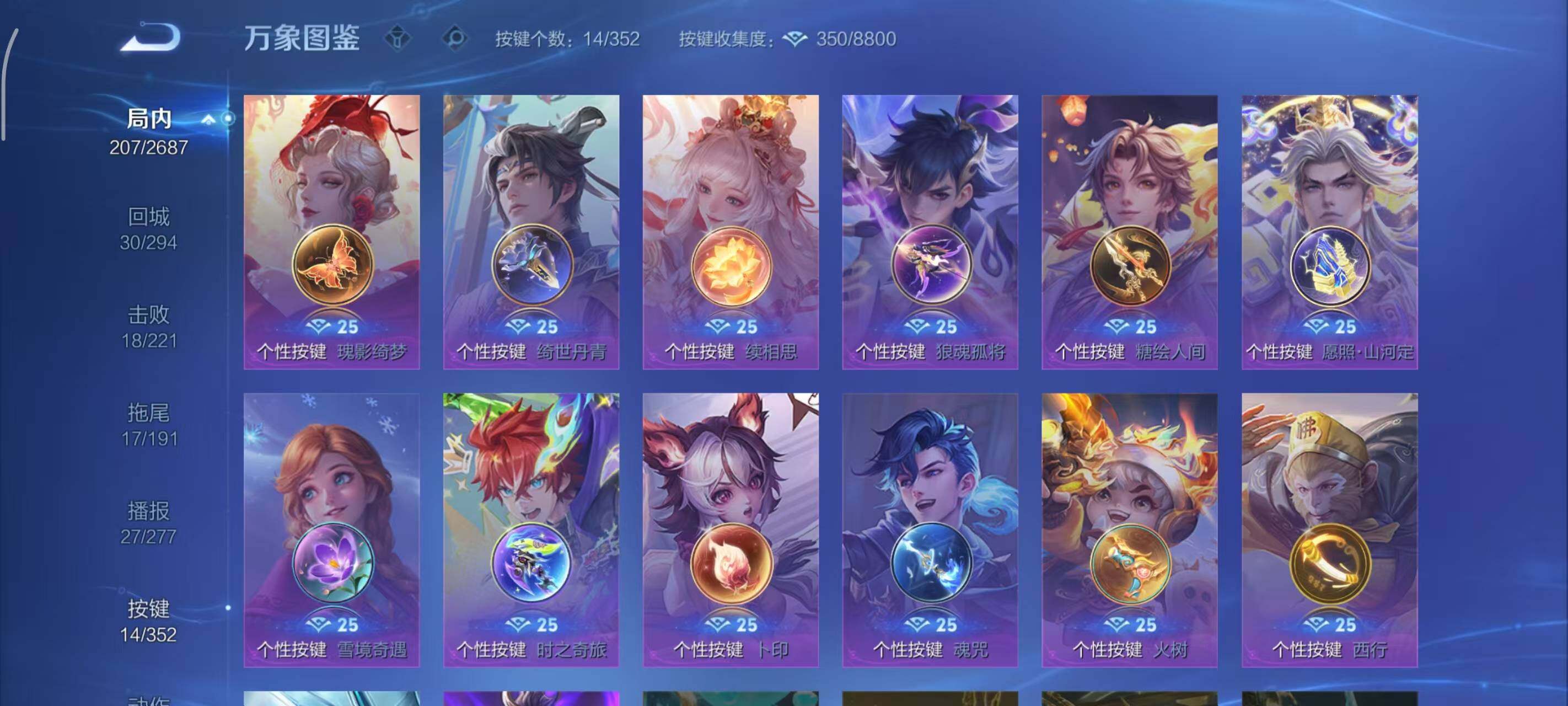 小乔青蛇,瑶遇见神鹿,李元芳逐浪之夏,孙策猫狗日记,阿轲节奏热浪,露娜紫霞仙子,王昭君偶像歌手,孙尚香时之恋人,雅典娜冰冠公主,鲁班七号电玩小子,嬴政摇滚巨星,刘禅绅士熊喵,刘禅天才门将,安琪拉心灵骇客,安琪拉时之奇旅,程咬金功夫厨神,兰陵王暗隐猎兽者,曹操幽灵船长,宫本武藏鬼剑武藏,亚瑟心灵战警,西施诗语江南,小乔缤纷独角兽,夏侯惇乘风破浪,花木兰水晶猎龙者,铠曙光守护者,墨子金属风暴,吕布圣诞狂欢,百里守约特工魅影,嫦娥拒霜思,李白千年之狐,貂蝉唤灵魅影,刘禅电玩·爆裂旋风,蒙犽百解令,高渐离燃音魔法,亚连糖绘人间,苍狼魂孤将,狄仁杰绮世丹青