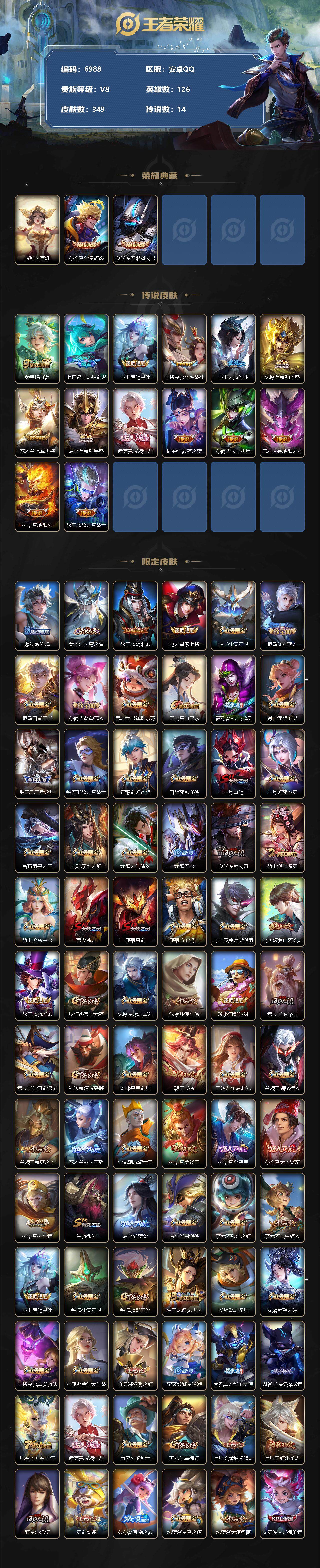 [13866488]安卓Q-V8-永恒钻石III段位-126英雄-349皮肤-2典藏-0珍品无双-0无双-0珍品传说-14传说-103史诗