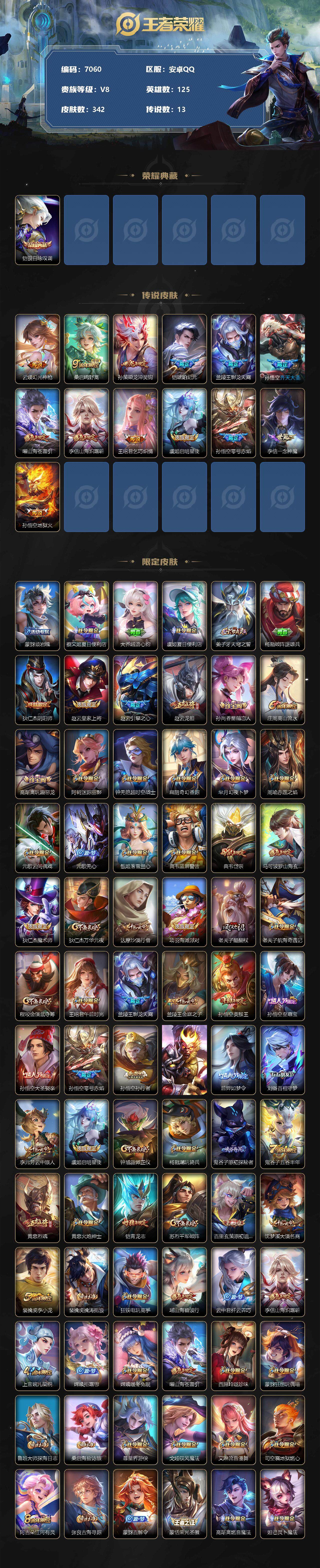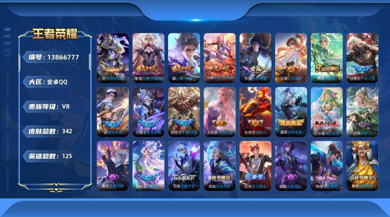 [13866777]安卓Q-V8-至尊星耀II段位-125英雄-342皮肤-1典藏-0珍品无双-0无双-0珍品传说-13传说-114史诗