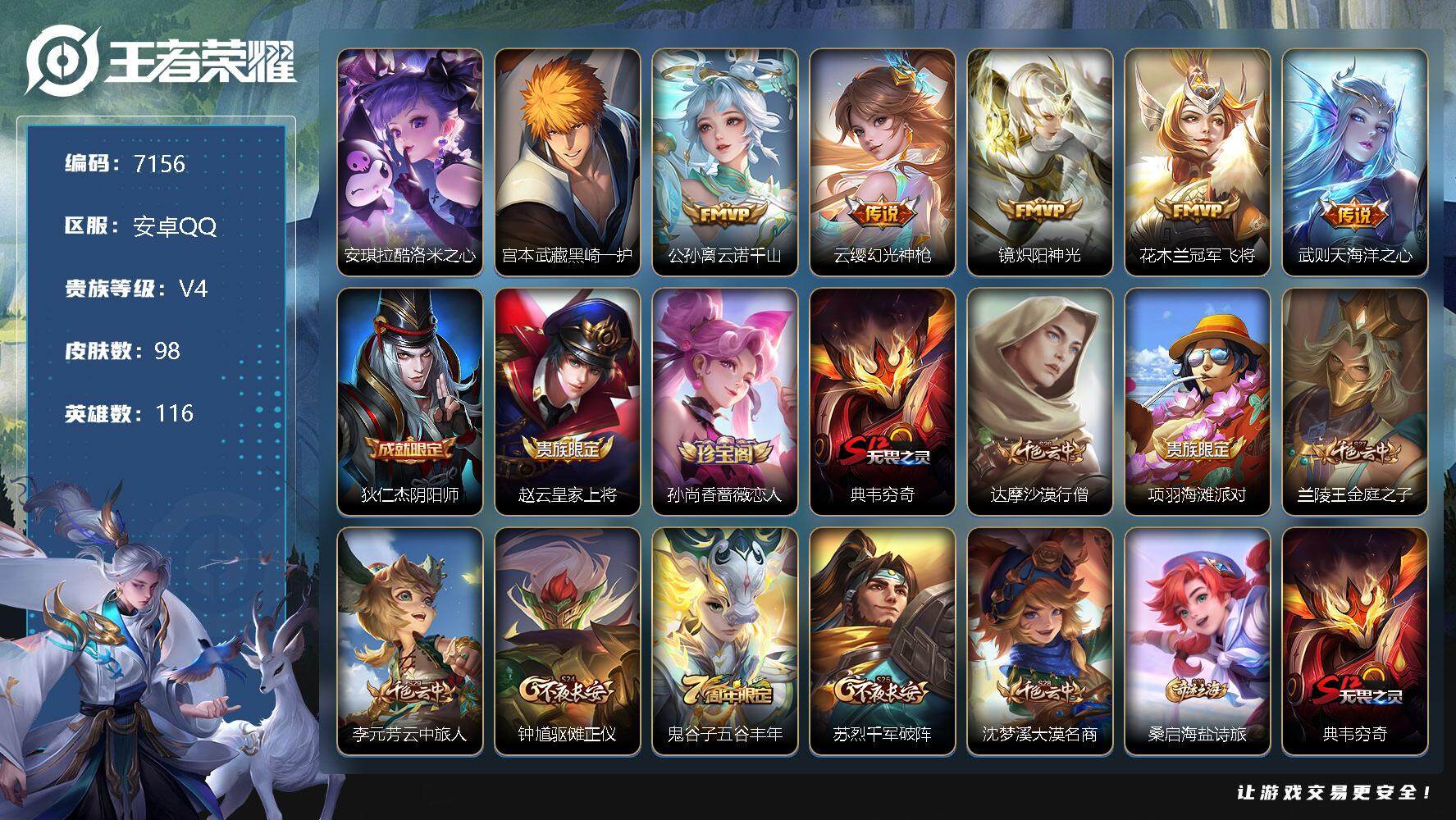 [13867016]安卓Q-V4-永恒钻石II段位-116英雄-98皮肤-0典藏-0珍品无双-0无双-2珍品传说-5传说-20史诗