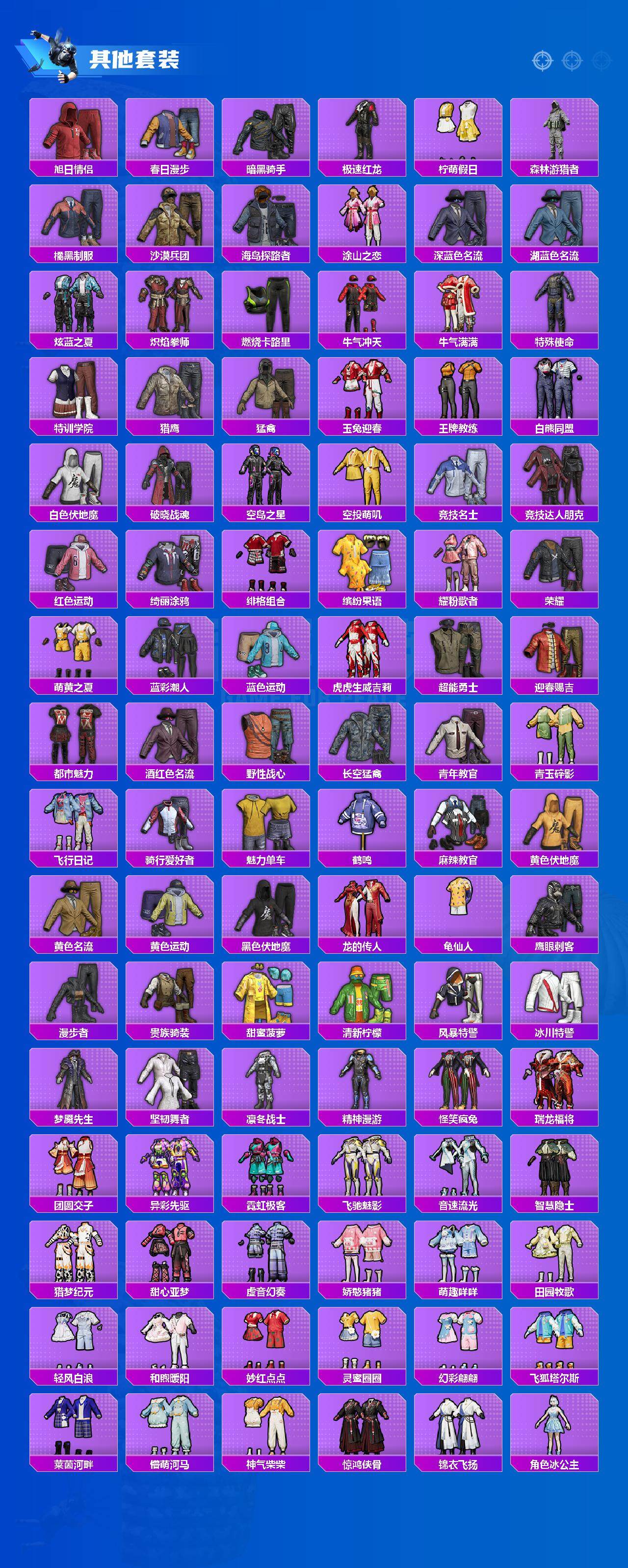 【稀有套装】:套装-龟仙人,套装-巳巳如意,套装-雏菊兔兔,套装-萝兰蝴蝶,套装-糖糖葫芦,套装-青团波波,套装-棉花软糖,套装-燕燕于飞,套装-鱼渊荷华,角色-风玲,套装-粉恋花,套装-紫幽梦,套装-蓝冰羽,套装-星渊小夜曲,套装-彩虹兔,套装-云朵鹅,套装-雪绒豹,角色-乐音