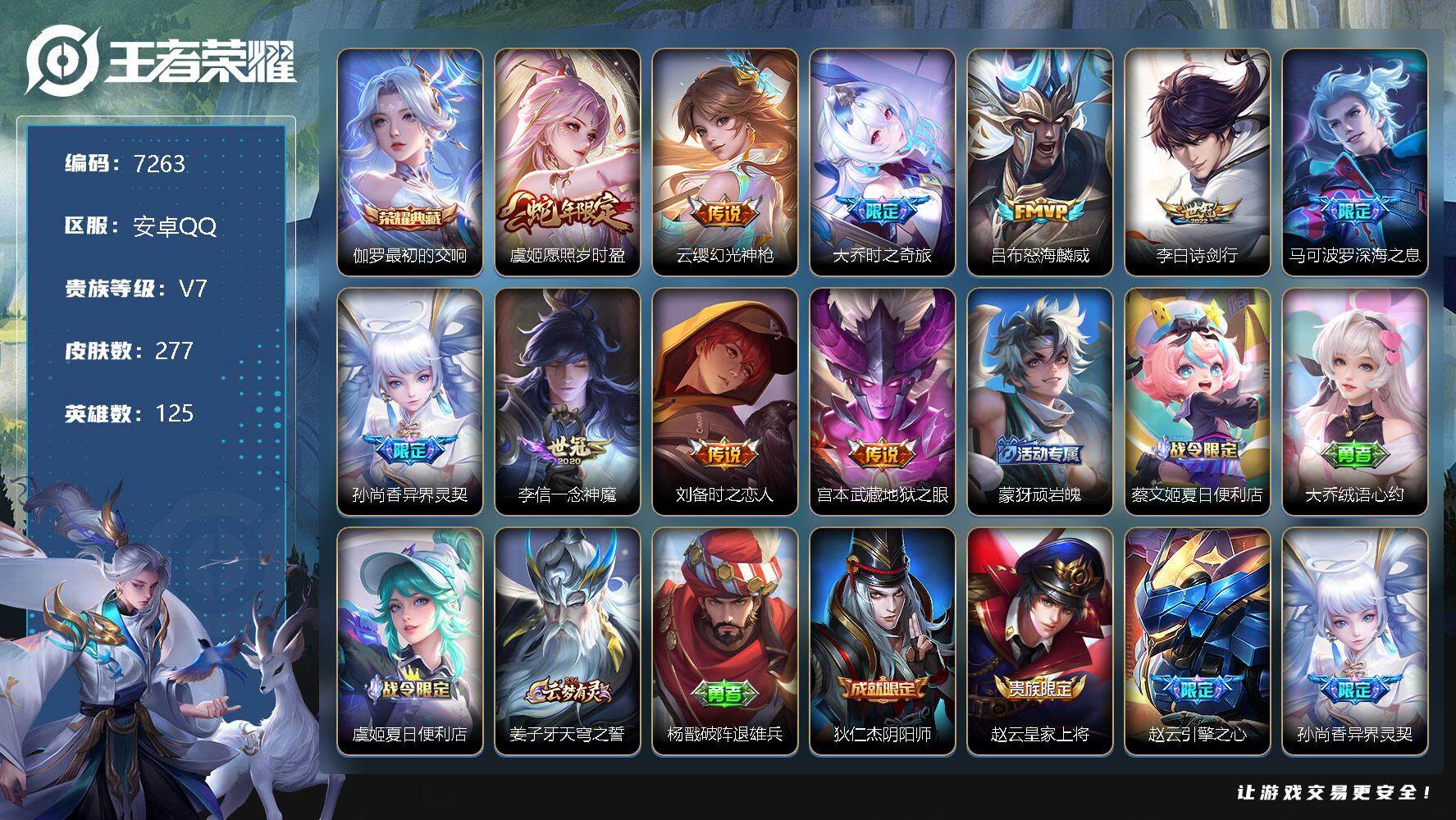 [13867339]安卓Q-V7-永恒钻石III段位-125英雄-277皮肤-1典藏-0珍品无双-0无双-0珍品传说-10传说-96史诗