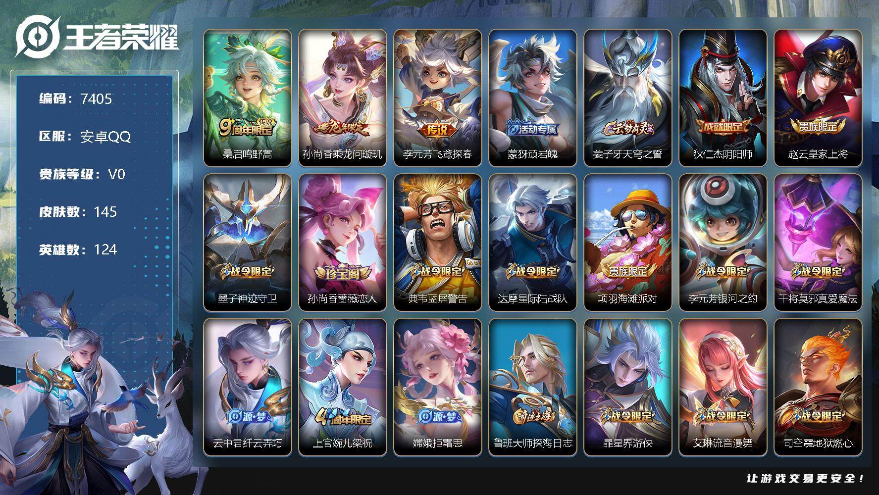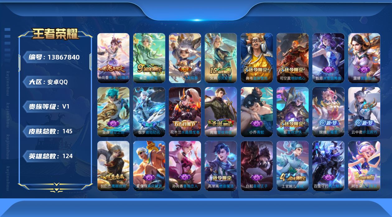 [13867840]安卓Q-124英雄-145皮肤-3传说-40史诗