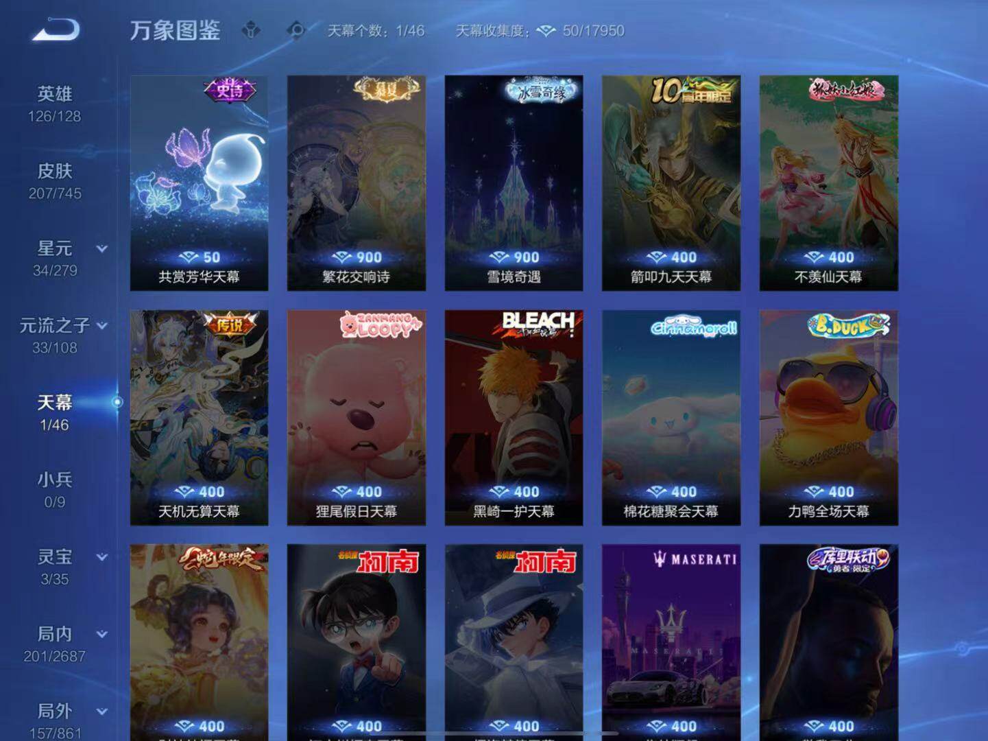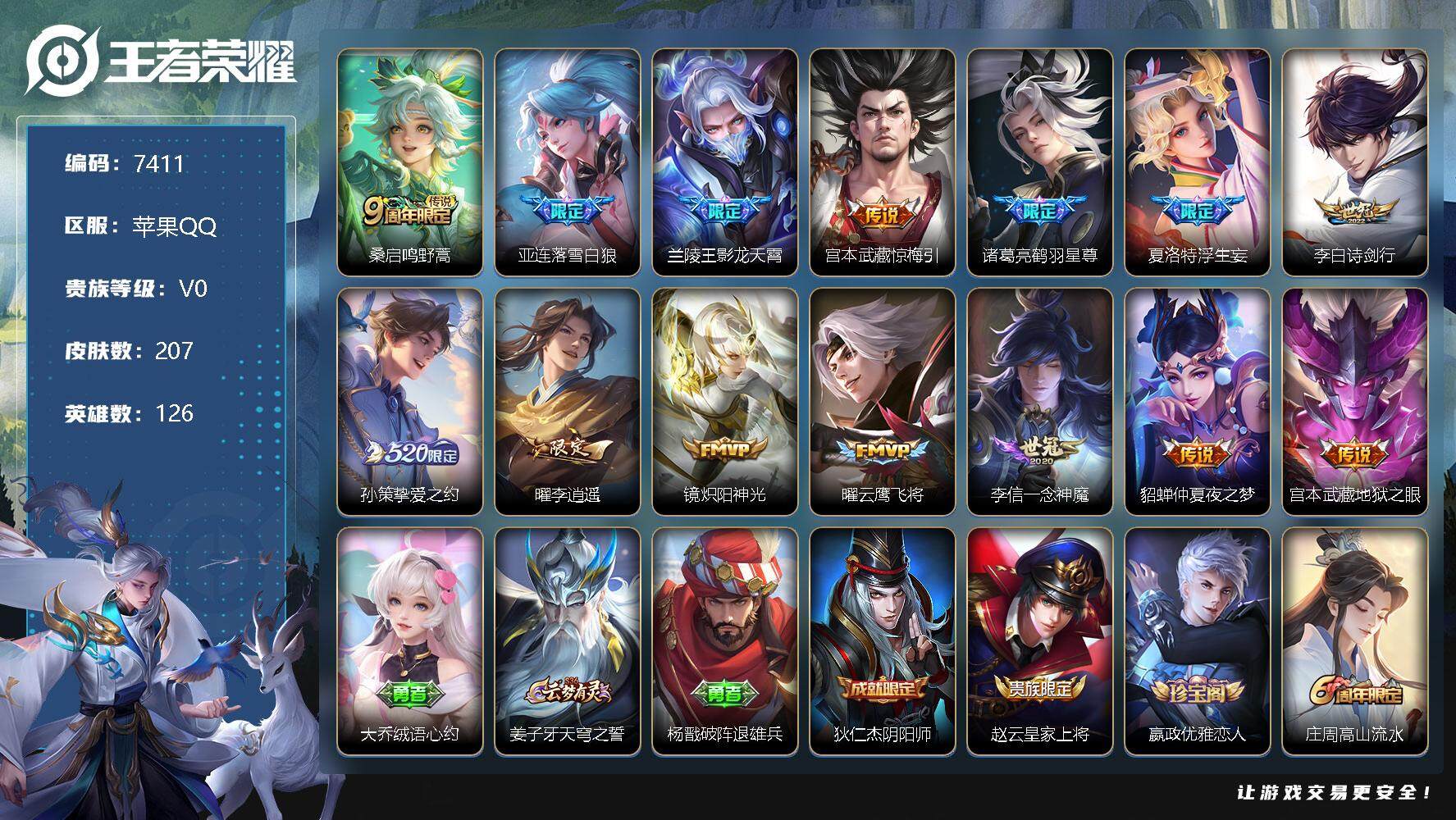 [13867855]苹果Q-126英雄-207皮肤-0典藏-14传说-63史诗