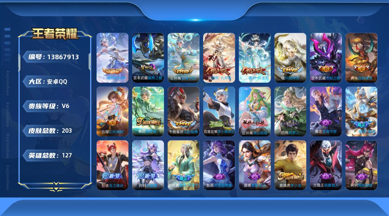 [13867913]安卓Q-V6-203皮肤-1典藏-9传说-59史诗