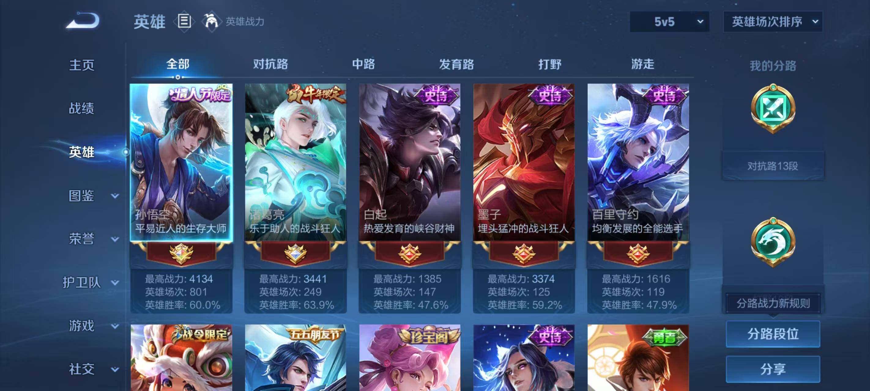 - [12026029]V7 1典藏 16传说 123英雄 174皮肤 可修改实名 女号 优质装备:鸣剑·曳影,黄金射手座,冠军飞将,炽阳神光,地狱火,地狱之眼,无双飞将,山海·苍雷引(电光曜子),炽翼辉光(娃娃菜牛角包),妄想实况,鹤归松栖(云缨),夜礼服假面 传说皮:乘龙·问璇玑(孙尚香年限),乘龙·铭钟鼎(赵云年限),落雪白狼,续相思 珍宝阁皮:优雅恋人 限定皮:愿照·岁时盈(虞姬年限),五谷丰年,梁祝,逐梦之翼,默契交锋-花木兰,山海·玄木吟(马可年限) 史诗皮:苍鳞隐世,星界战将,谪仙醉月,石田雨龙,茶境仙,夜落电台,超元猎域,紫霞仙子,苍穹之光,特工魅影,千年之狐,永昼,江河有灵,匿光侦查者,百解令(蒙犽),高渐离燃音魔法,蒙恬荣光圣徽,无限星赏官,冰冠公主,偶像歌手,末日机甲-吕布,猫狗日记-孙策,时之恋人-孙尚香,节奏热浪,女仆咖啡,水果甜心,天才门将,德古拉伯爵,暗隐猎兽者,幽灵船长,鬼剑武藏,心灵战警,地狱岩魂,乘风破浪,水晶猎龙者,曙光守护者,金属风暴,原初追逐者,圣诞狂欢,鹰眼统帅,暗夜贵公子,魅力维加斯,赏金猎手
