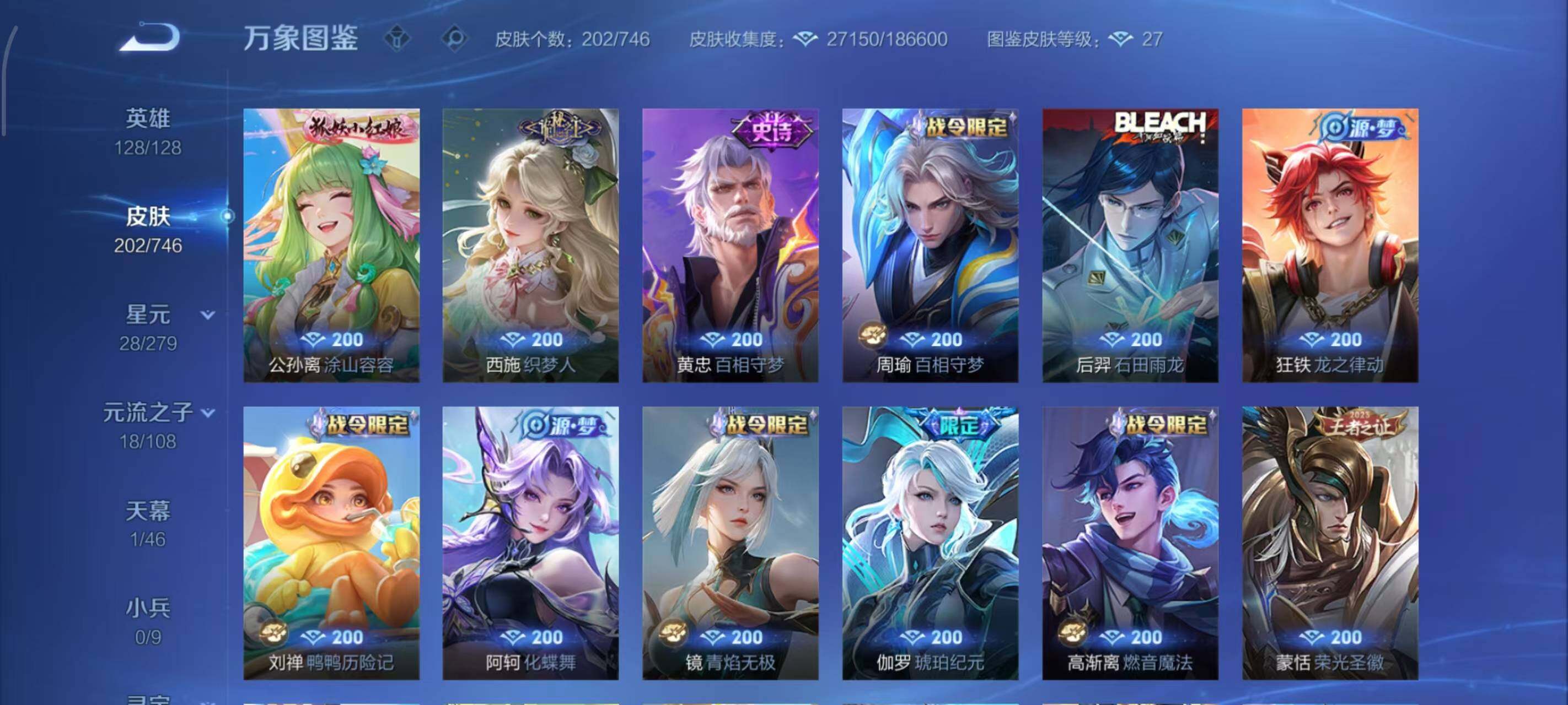 [13867958]安卓Q-V7-至尊星耀I段位-128英雄-202皮肤-2珍品传说-7传说-59史诗