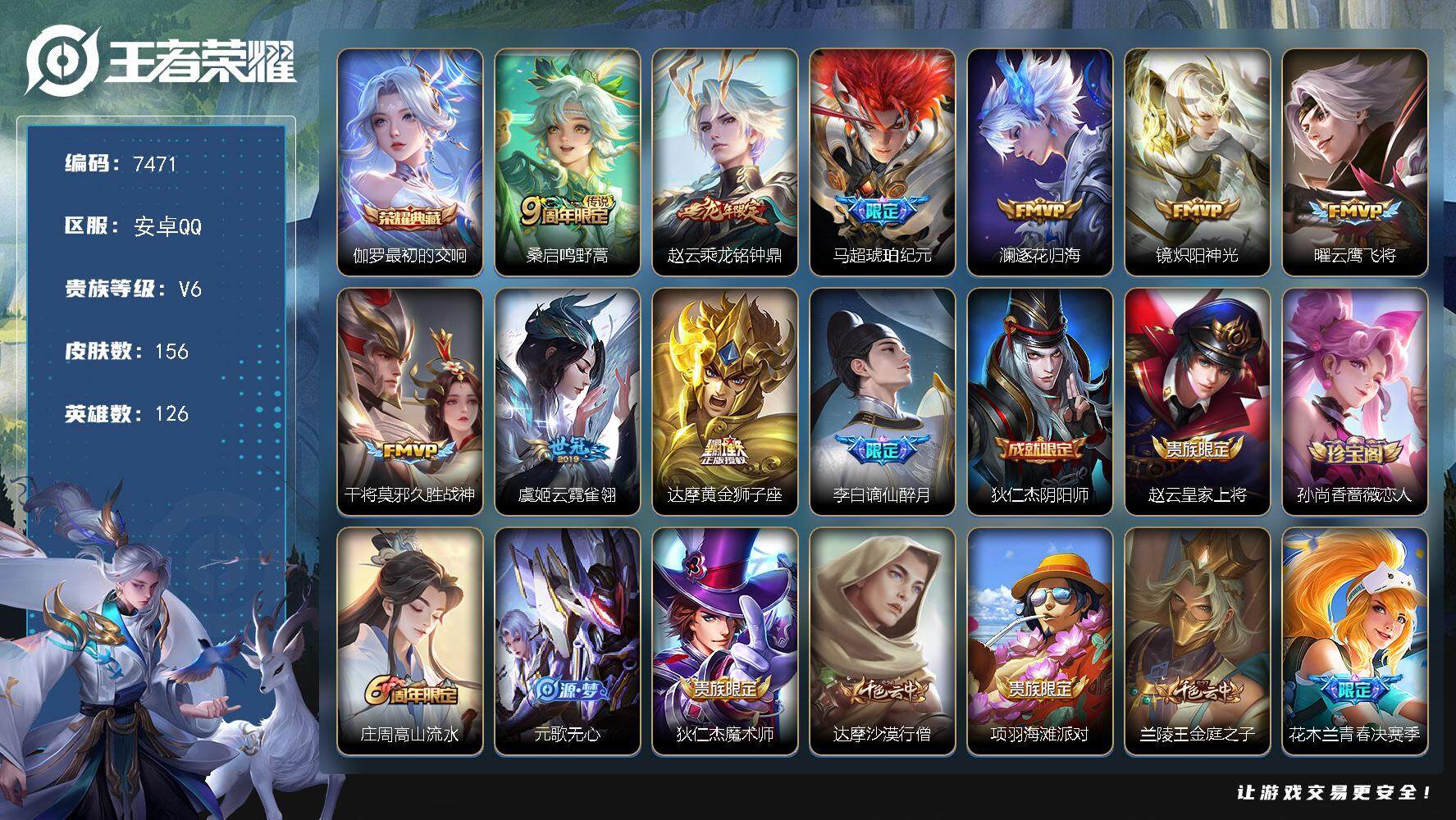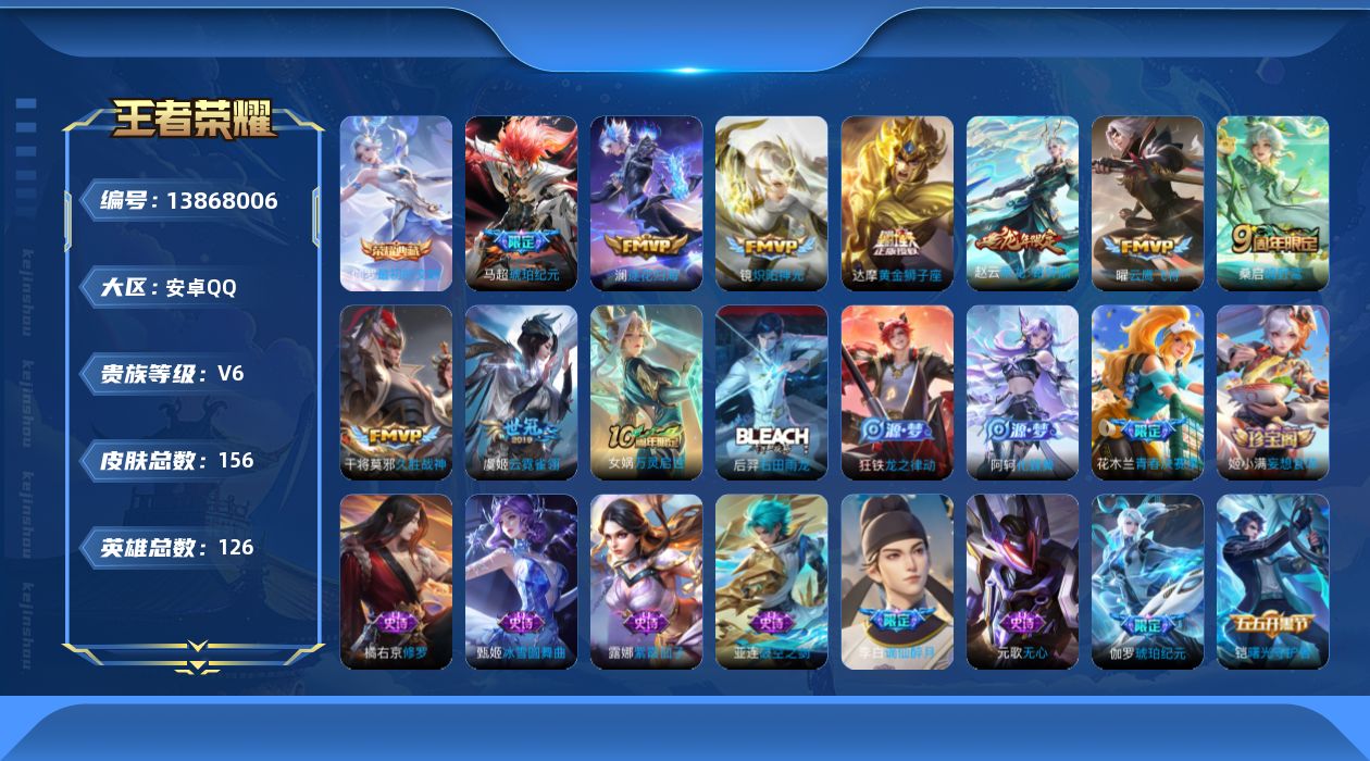 [13868006]安卓Q-V6-156皮肤-1典藏-9传说-53史诗