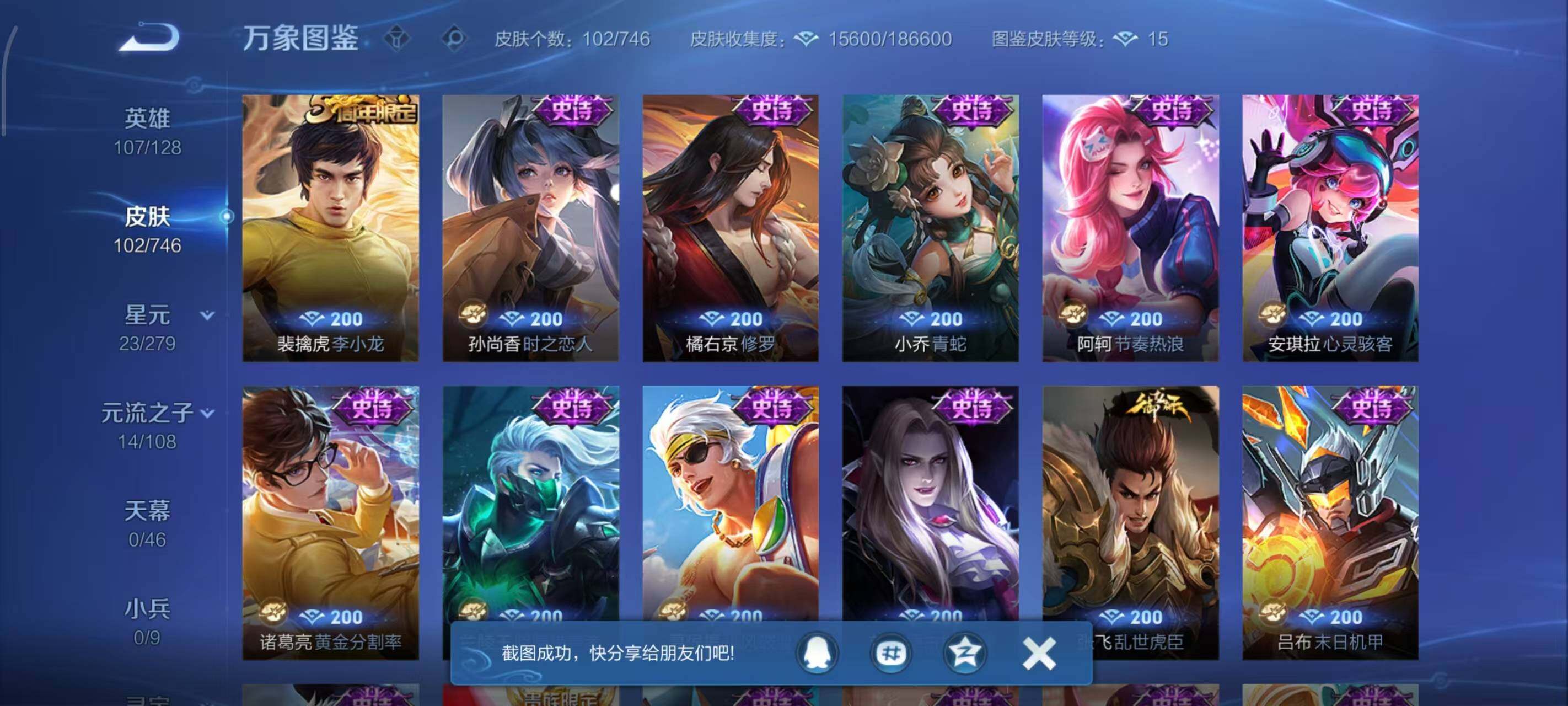 - [11433408]V7 7传说 124英雄 218皮肤 可修改实名 优质装备:黄金射手座,云鹰飞将(小将军),猫影幻舞,久胜战神,零号·赤焰 传说皮:幻光神枪 珍宝阁皮:玩趣恶龙 限定皮:鸣野蒿,至尊宝,冰锋战神,梁祝,天狼溯光者,李小龙,霸王别姬-虞姬,孙行者,大圣娶亲 史诗皮:赞萌露比,鸭鸭历险记-刘禅,星界战将,龙之律动,石田雨龙,茶境仙,怒海争锋,蔬乡物语(鲁班七号),百相守梦-黄忠,紫霞仙子,电玩小子(小书包),白龙吟,黄金分割率,特工魅影,千年之狐,偶像歌手,龙骑士(小龙虾),无限星赏官,冰冠公主,猫狗日记-孙策,猫狗日记-大乔,时之恋人-孙尚香,节奏热浪,女仆咖啡,水果甜心,绅士熊喵,天才门将,星夜王子,心灵骇客,功夫厨神,暗隐猎兽者,鬼剑武藏,心灵战警,乐园奇幻夜,舞动绿茵,地狱岩魂,纤云弄巧,繁星吟游(呼啦呼啦),缤纷独角兽,乘风破浪,逐浪之夏,曙光守护者,箭羽风息,圣诞狂欢,圣诞恋歌,鹰眼统帅,暗夜贵公子,魅力维加斯,未来纪元-赵云