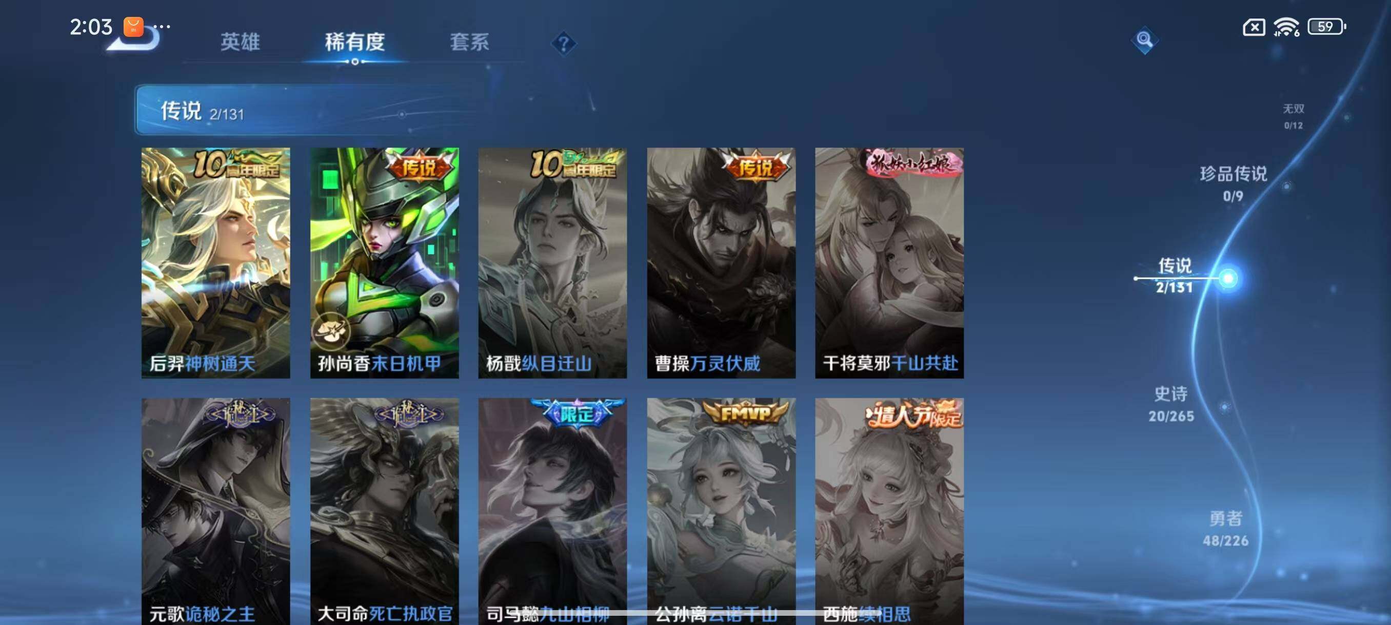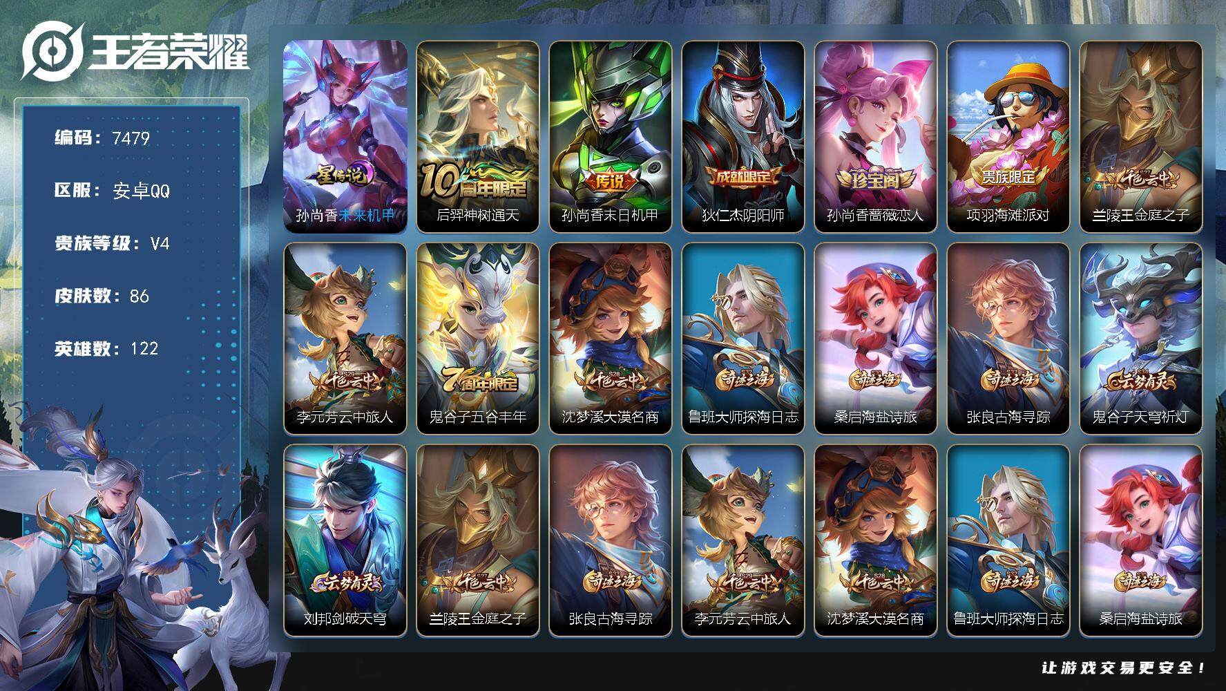 [13868037]安卓Q-V4-最强王者段位-122英雄-86皮肤-0典藏-0珍品无双-0无双-0珍品传说-2传说-20史诗