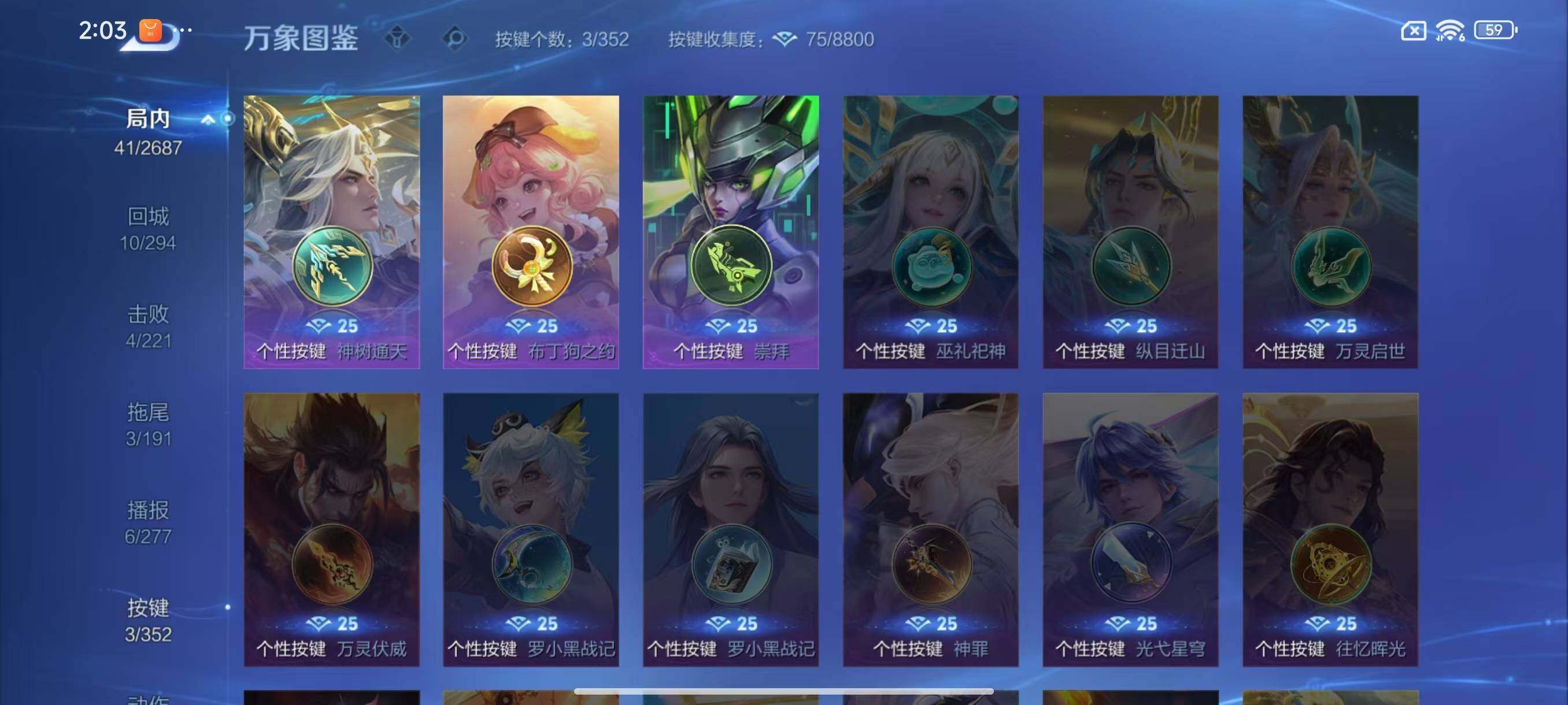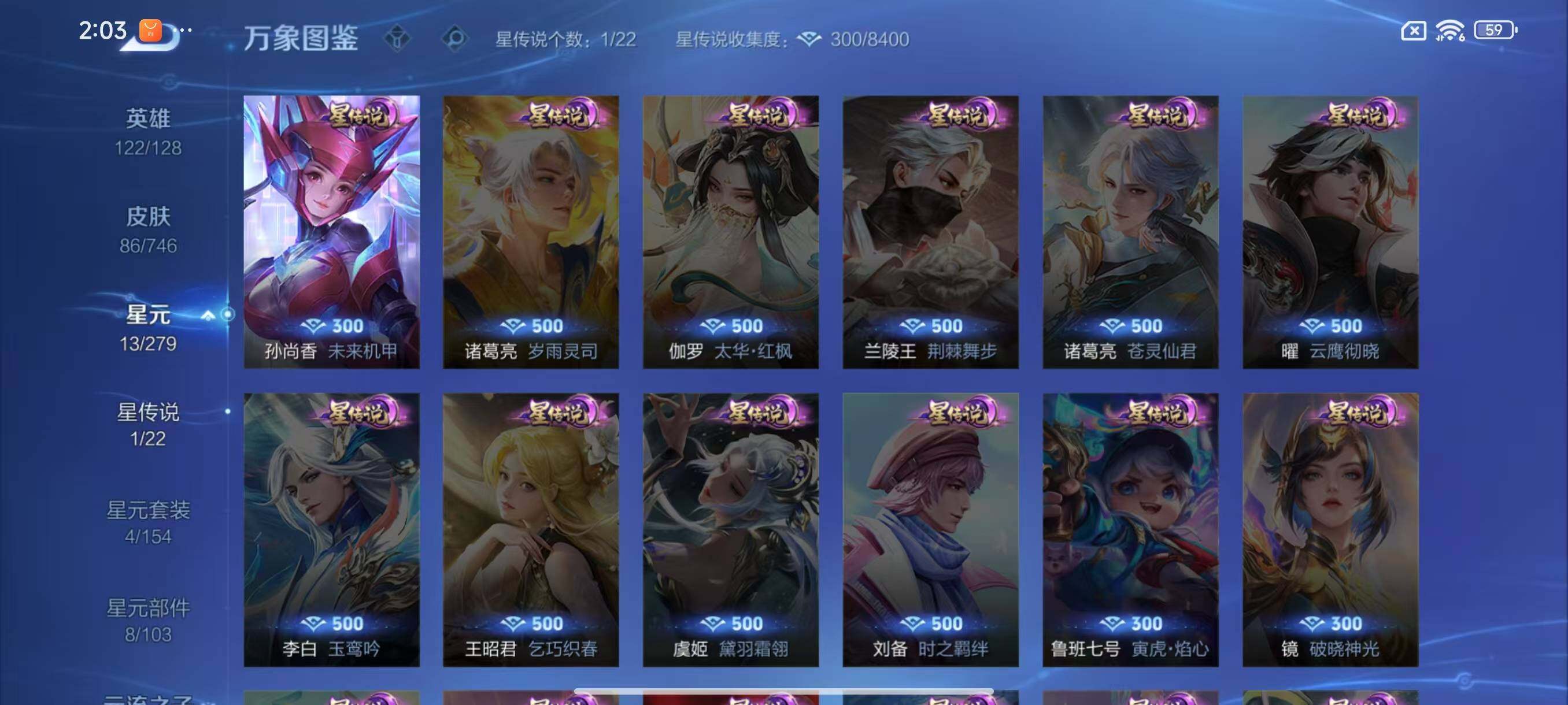 - PX_2092079-贵族8/皮肤245/典藏1/传说17/史诗65/英雄124/无限飓风号/曜器灵螭龙剑/马可波罗怪盗基德/孙策时之奇旅/女武神/玩趣恶龙/特工战影/仲夏夜之梦/一念神魔/启明星使/炽阳神光/末日机甲策/无双飞将/诗剑行/小动物乐团/霜月吟/逐花归海/战鼓燎原/落雪白狼/桑启鸣野蒿/裴擒虎祥瑞亨通/云缨幻光神枪/虞姬愿照岁时盈/澜愿照九州拓/姜子牙天穹之誓/狄仁杰阴阳师/赵云皇家