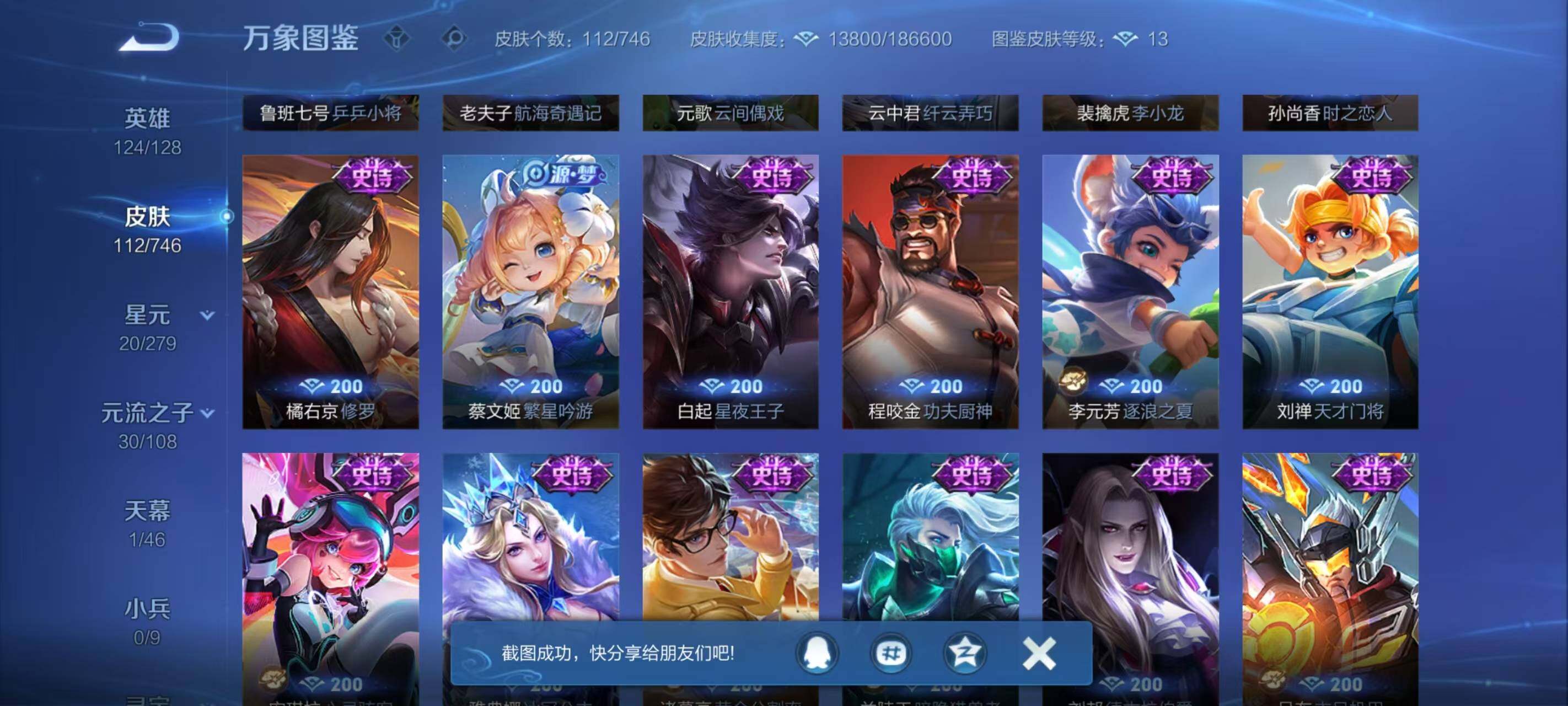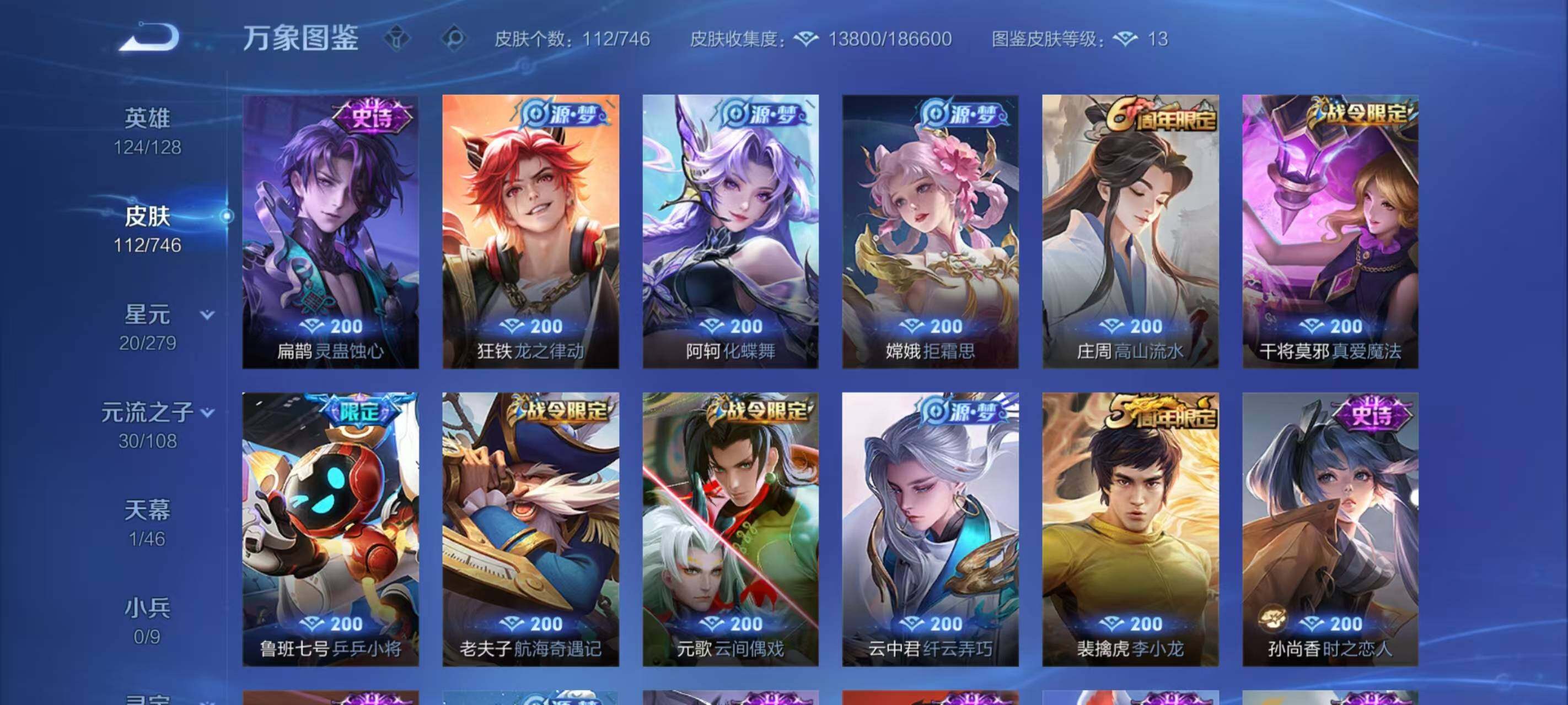 [13868048]安卓Q-V2-112皮肤-35史诗 【限定皮肤】:狄仁杰阴阳师,赵云皇家上将,墨子神迹守卫,孙尚香蔷薇恋人,鲁班七号乒乒小将,庄周高山流水,元歌云间偶戏,狄仁杰万华元夜,达摩沙漠行僧,项羽海滩派对,老夫子醍醐杖,老夫子航海奇遇记,程咬金演武夺筹,兰陵王金庭之子,亚瑟潮玩骑士王,后羿圣弓游侠,李元芳云中旅人,钟馗驱傩正仪,干将莫邪真爱魔法,蔡文姬繁星吟游,鬼谷子原初探秘者,苏烈千军破阵,沈梦溪大漠名商,明世隐疑决卦,裴擒虎李小龙,云中君纤云弄巧,嫦娥拒霜思,鲁班大师探海日志,桑启海盐诗旅 【赛季限定】:狄仁杰万华元夜,达摩沙漠行僧,老夫子醍醐杖,程咬金演武夺筹,兰陵王金庭之子,李元芳云中旅人,钟馗驱傩正仪,鬼谷子原初探秘者,苏烈千军破阵,沈梦溪大漠名商,明世隐疑决卦,鲁班大师探海日志,桑启海盐诗旅 【战令限定】:墨子神迹守卫,元歌云间偶戏,老夫子航海奇遇记,亚瑟潮玩骑士王,后羿圣弓游侠,干将莫邪真爱魔法 【史诗皮肤】:鲁班七号电玩小子,赵云皇家上将,宫本武藏鬼剑武藏,孙尚香蔷薇恋人,孙尚香水果甜心,嬴政摇滚巨星,妲己魅力维加斯,墨子金属风暴,吕布圣诞狂欢,曹操幽灵船长,吕布末日机甲,刘邦德古拉伯爵,兰陵王暗隐猎兽者,诸葛亮黄金分割率,雅典娜冰冠公主,安琪拉心灵骇客,刘禅天才门将,李元芳逐浪之夏,程咬金功夫厨神,白起星夜王子,狄仁杰鹰眼统帅,蔡文姬繁星吟游,橘右京修罗,孙尚香时之恋人,裴擒虎李小龙,云中君纤云弄巧,元歌云间偶戏,老夫子航海奇遇记,鲁班七号乒乒小将,干将莫邪真爱魔法,庄周高山流水,嫦娥拒霜思,阿轲化蝶舞,狂铁龙之律动,扁鹊灵蛊蚀心 【其他皮肤】:项羽海滩派对,韩信教廷特使,韩信街头霸王,赵云白执事,白起白色死神,牛魔西部大镖客,扁鹊化身博士,宫本武藏未来纪元,安琪拉玩偶对对碰,孙膑天使之翼,典韦黄金武士,亚瑟死亡骑士,花木兰兔女郎,张飞五福同心,刘备万事如意,狄仁杰阴阳师,刘备汉昭烈帝,钟无艳海滩丽影,老夫子功夫老勺,孙尚香沉稳之力,诸葛亮掌控之力,苏烈坚韧之力,小乔丁香结,吕布野性能量,沈梦溪鲨炮海盗猫,哪吒次元突破,明世隐疑决卦,盾山圆桌骑士,老夫子醍醐杖,狂铁特工战影,鬼谷子原初探秘者,狄仁杰万华元夜,亚瑟潮玩骑士王,程咬金演武夺筹,钟馗驱傩正仪,墨子神迹守卫,苏烈千军破阵,后羿圣弓游侠,马可波罗潮玩牛仔,达摩沙漠行僧,刘邦虎啸剑宗,兰陵王金庭之子