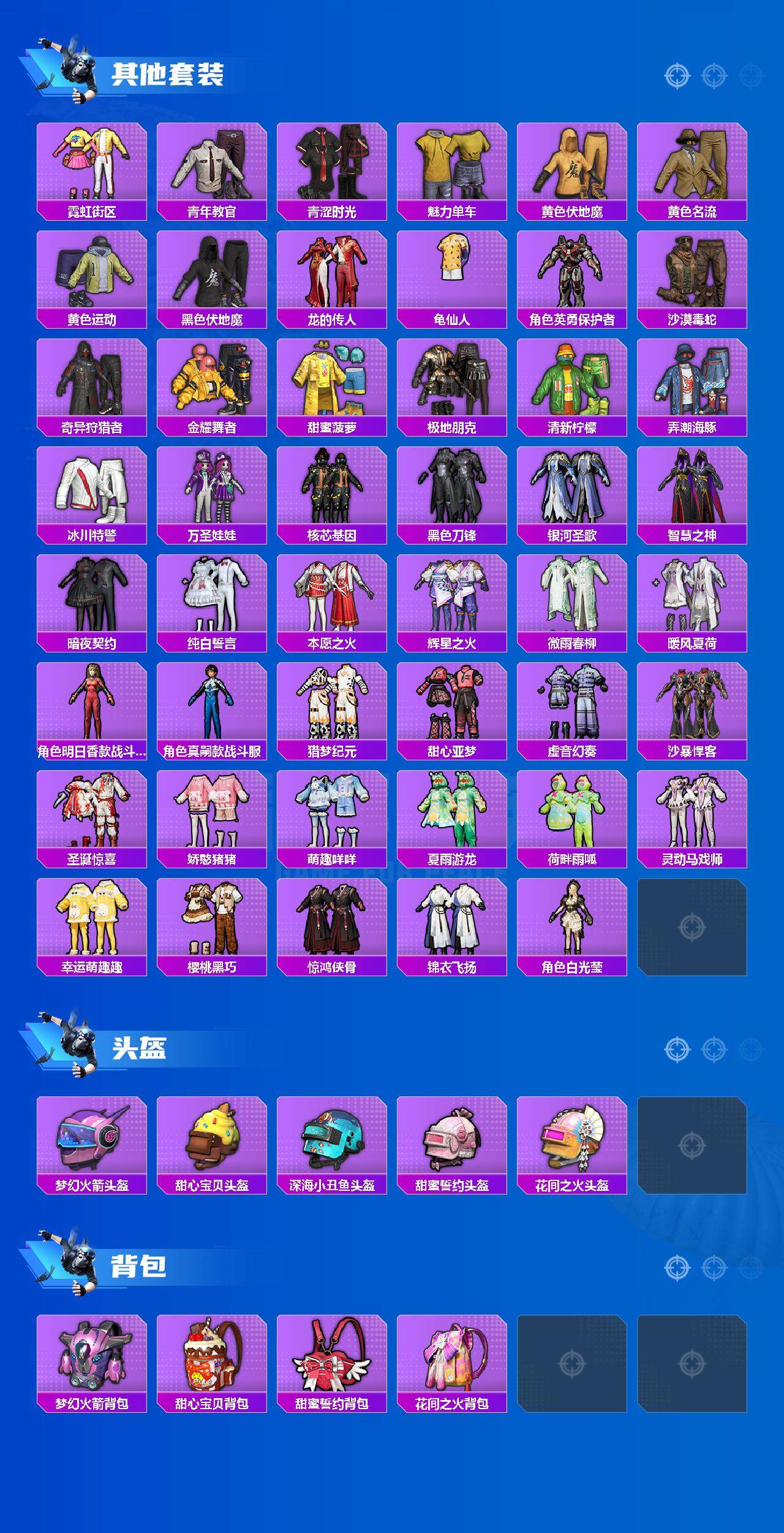 套装-冰川幽秘,套装-天使彩虹糖,套装-冰川粉黛,角色-千金淑猫,套装-冰川红玫,套装-宝贝奶油派,套装-太空嘟嘟,套装-傲雪凌霜,套装-甜蜜誓约,套装-新星烈龙,套装-炙焰红王,套装-彩虹甜喵,套装-天禅智恒,角色-2号机款机体服
