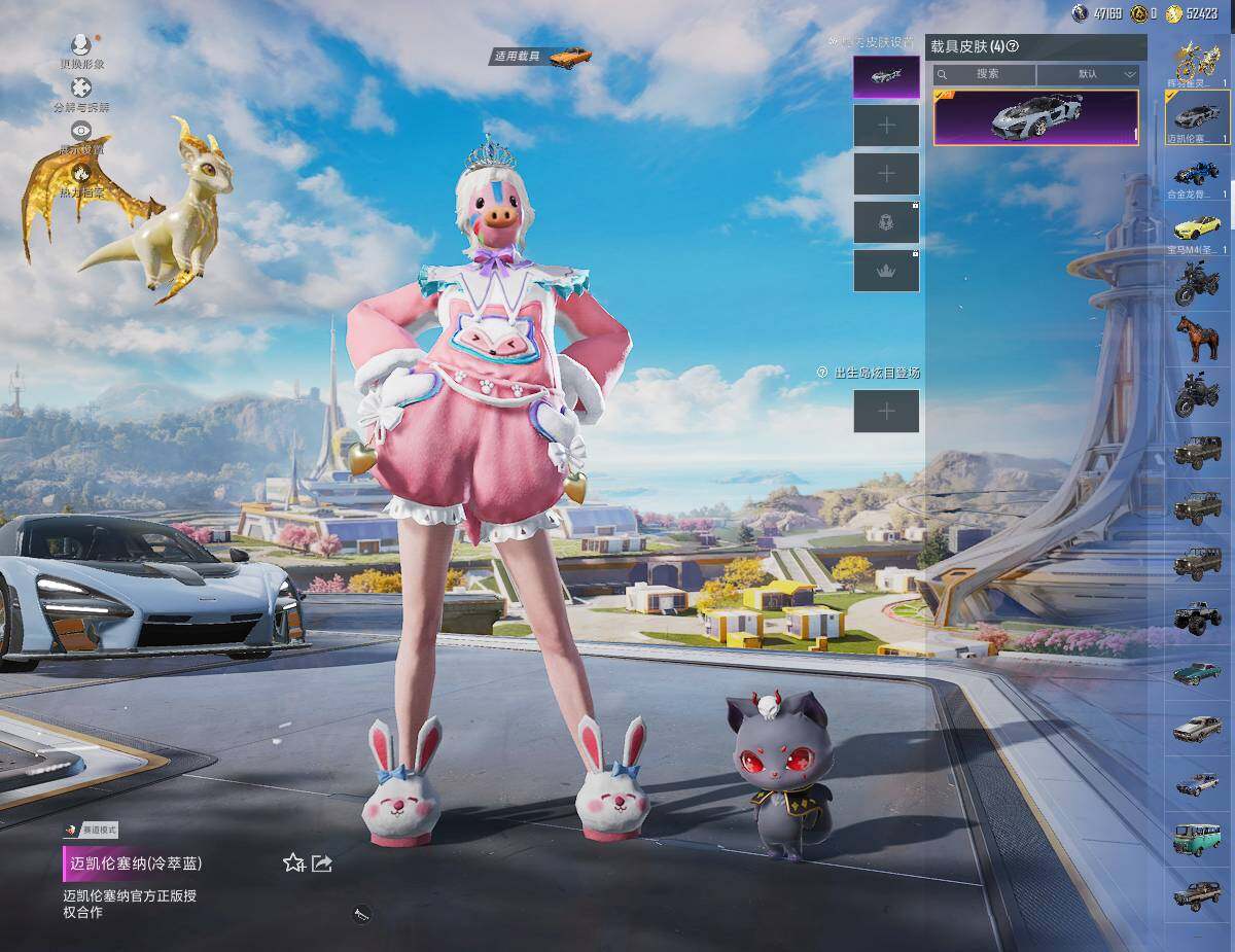 【粉色载具】:宝马M4(圣保罗黄),迈凯伦塞纳(冷萃蓝),合金龙骨(蓝),僚机-圣域龙宝,辉羽雀灵自行车