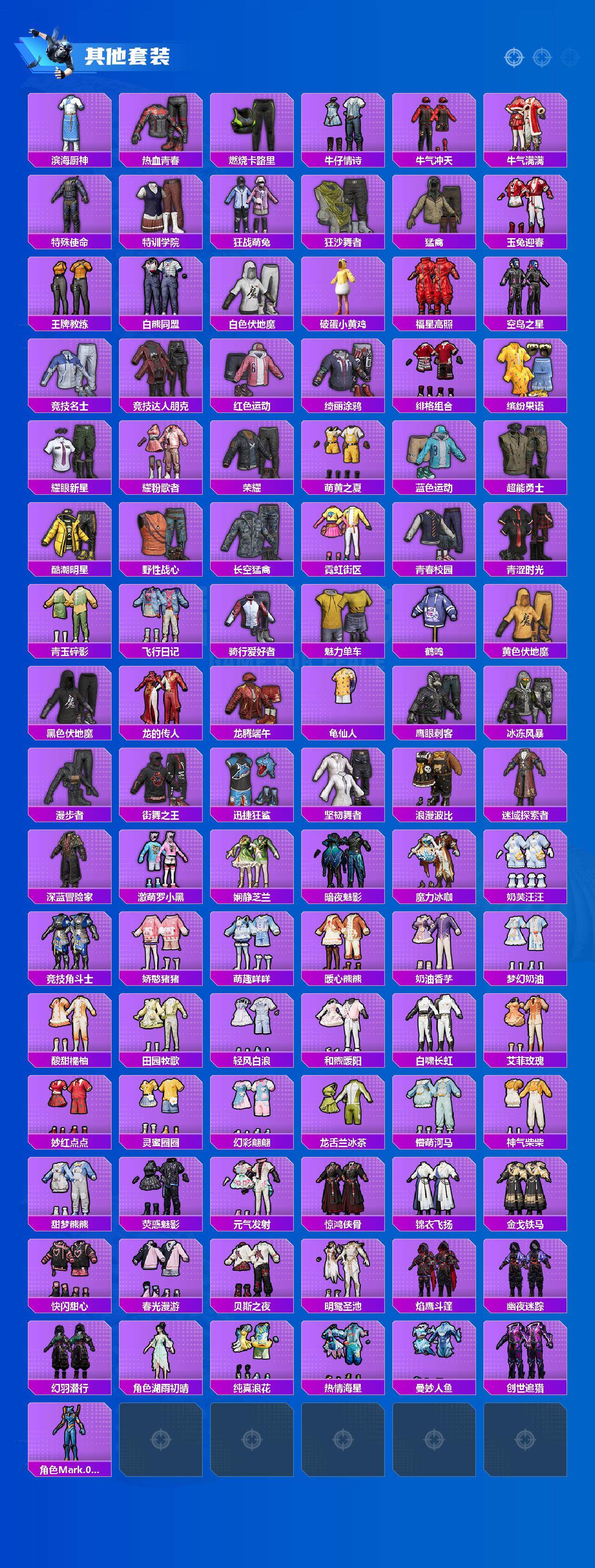 套装-浪漫天命,套装-龟仙人,套装-暗影哥特,角色-Mark.06,套装-狂沙舞者,套装-破蛋小黄鸡,套装-漫步者,套装-娴静芝兰