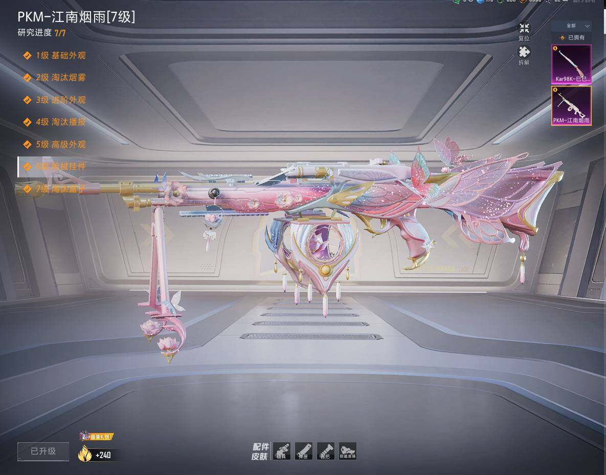 【粉色枪皮等级】:Kar98K-巳巳如意(五级),PKM-江南烟雨(七级)