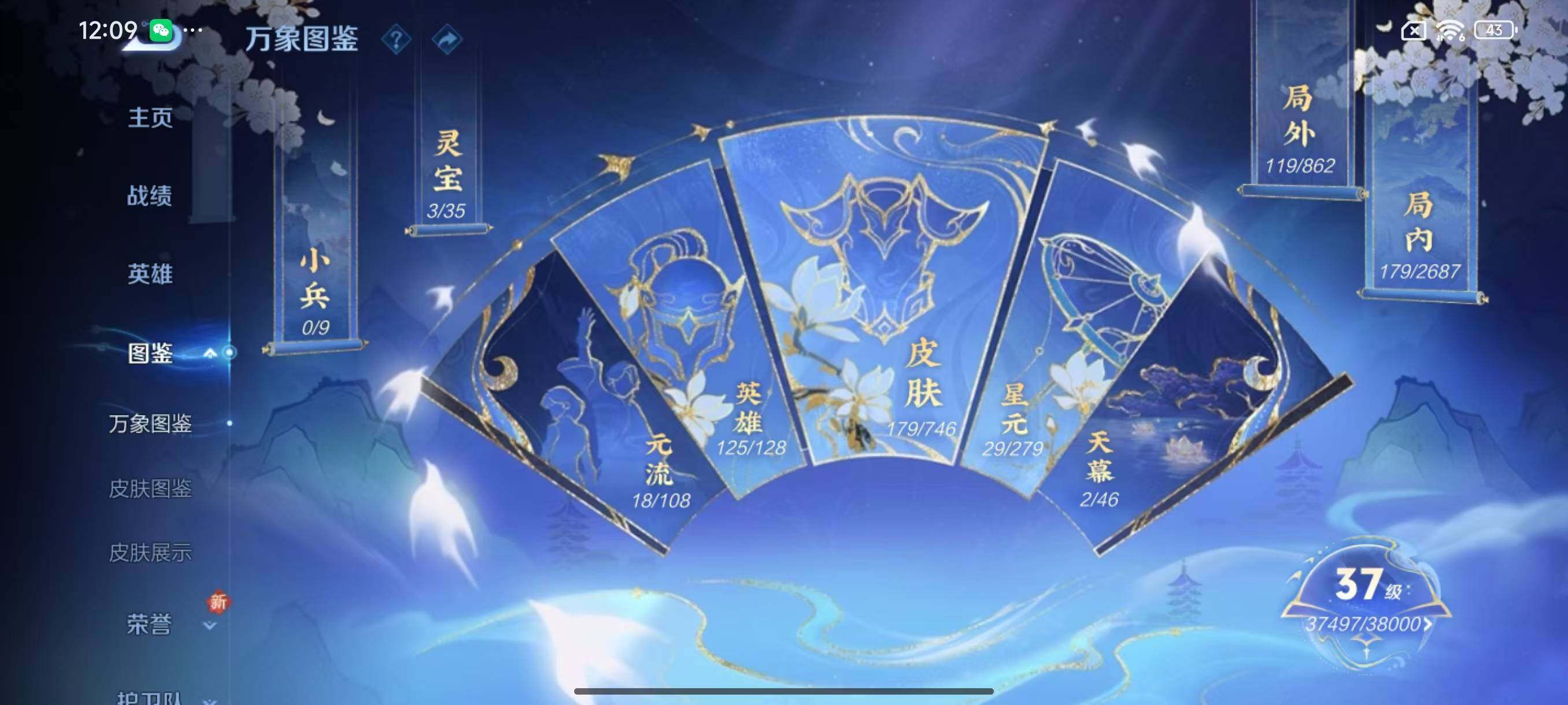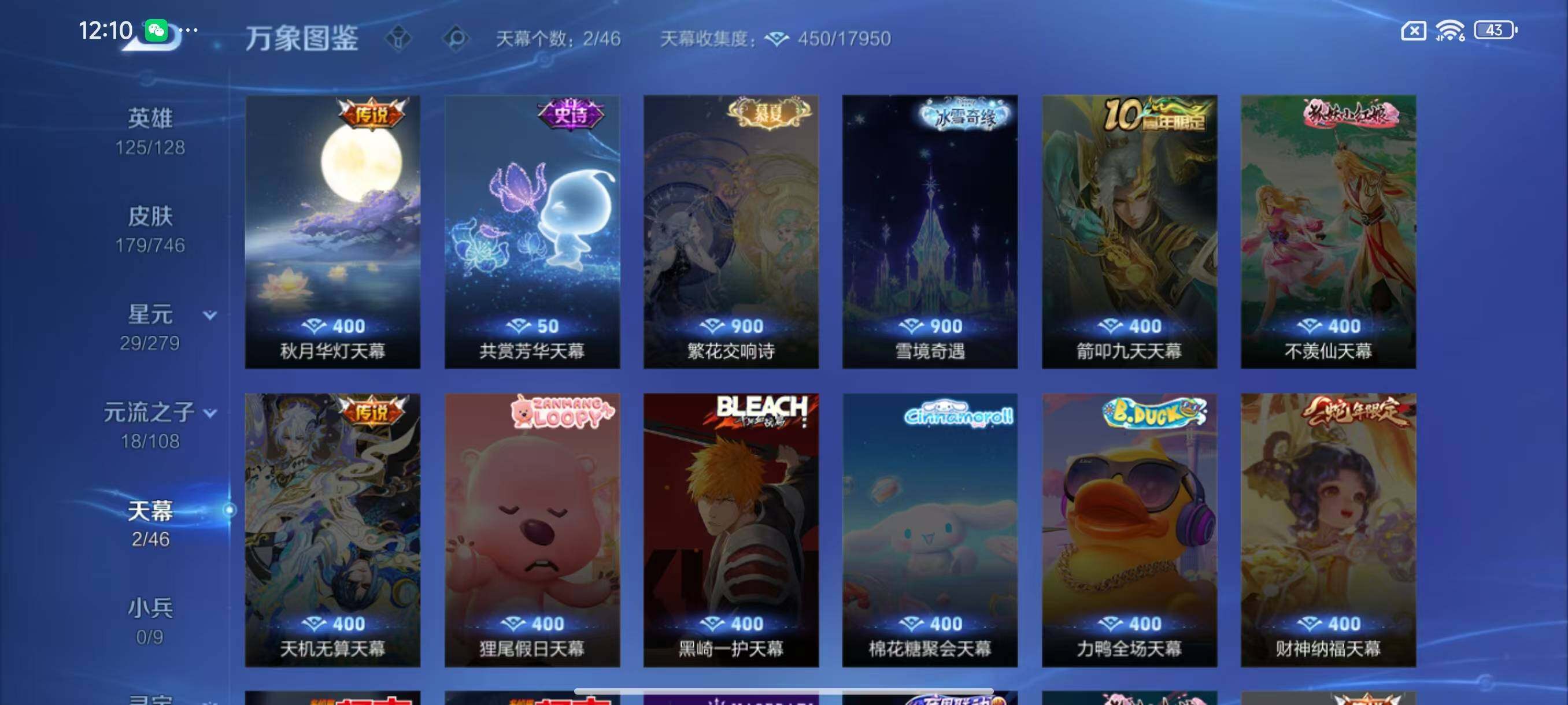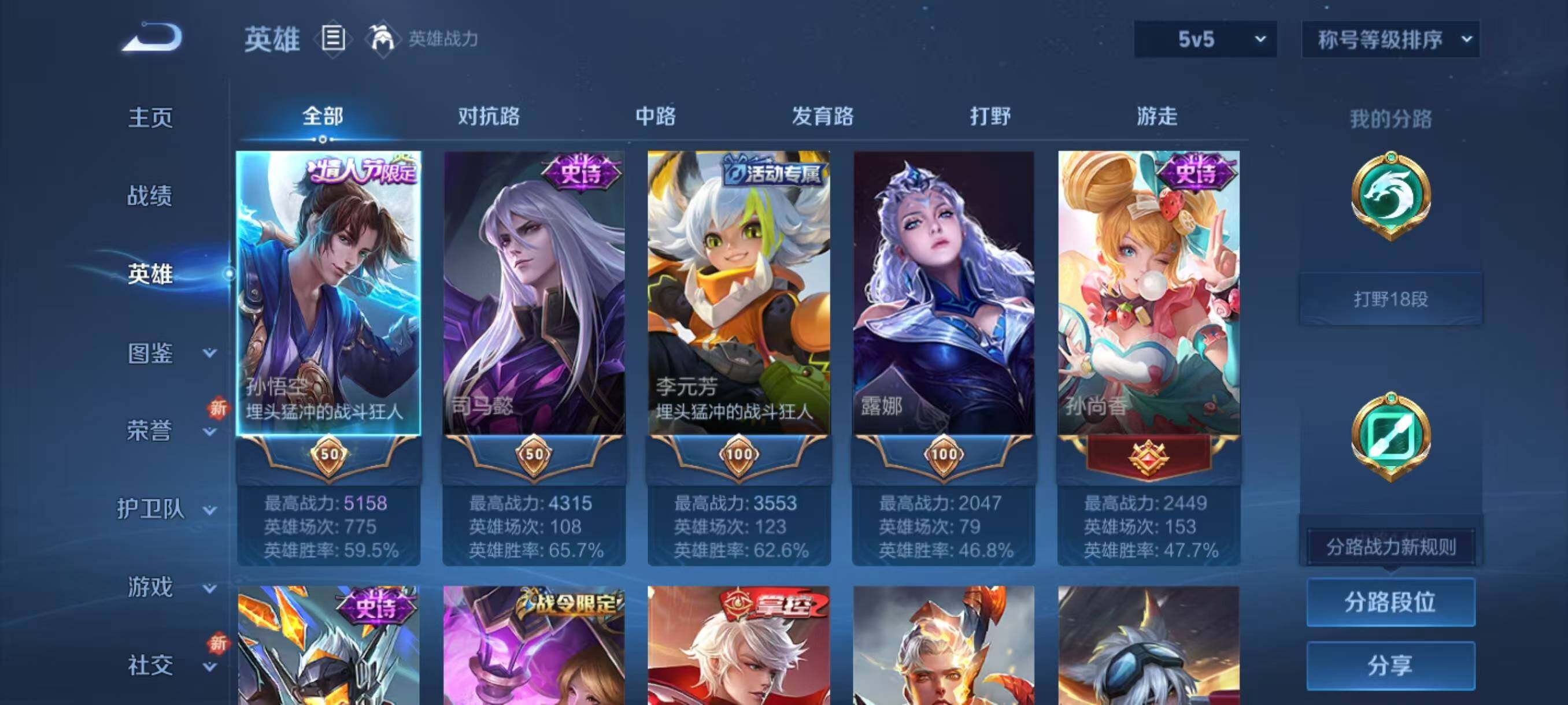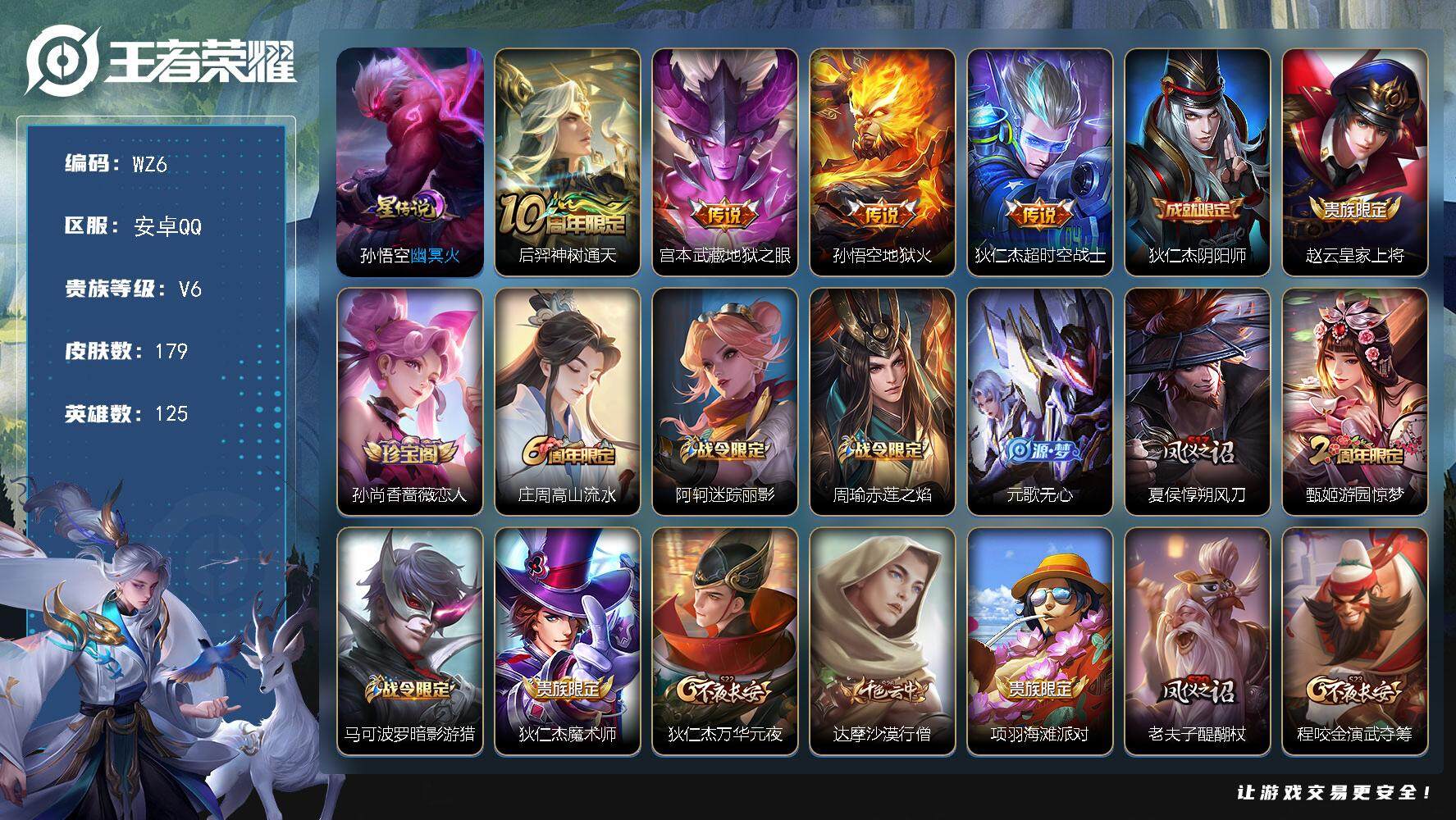 - PX_2081431-实名: 可修改 贵族等级: V7 英雄数: 124 皮肤数: 252 荣耀水晶: 神鉴启示录 传说皮: 山海·琳琅生 限定皮: 李小龙,游园惊梦,梁祝,异界灵契,天狼溯光者,乒乒小将,默契交锋-兰陵王,高山流水,孙行者,五谷丰年,鸣野蒿,陌上桑,逐霄战戟,愿照·众生和