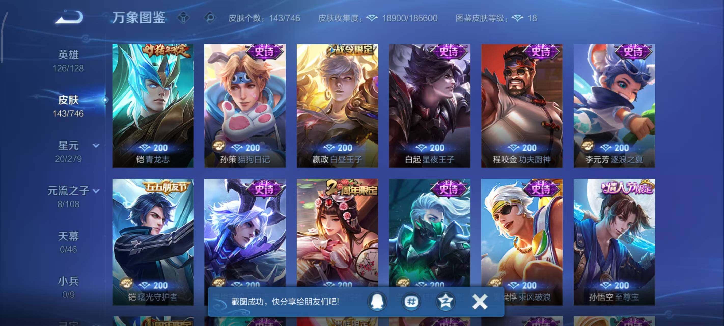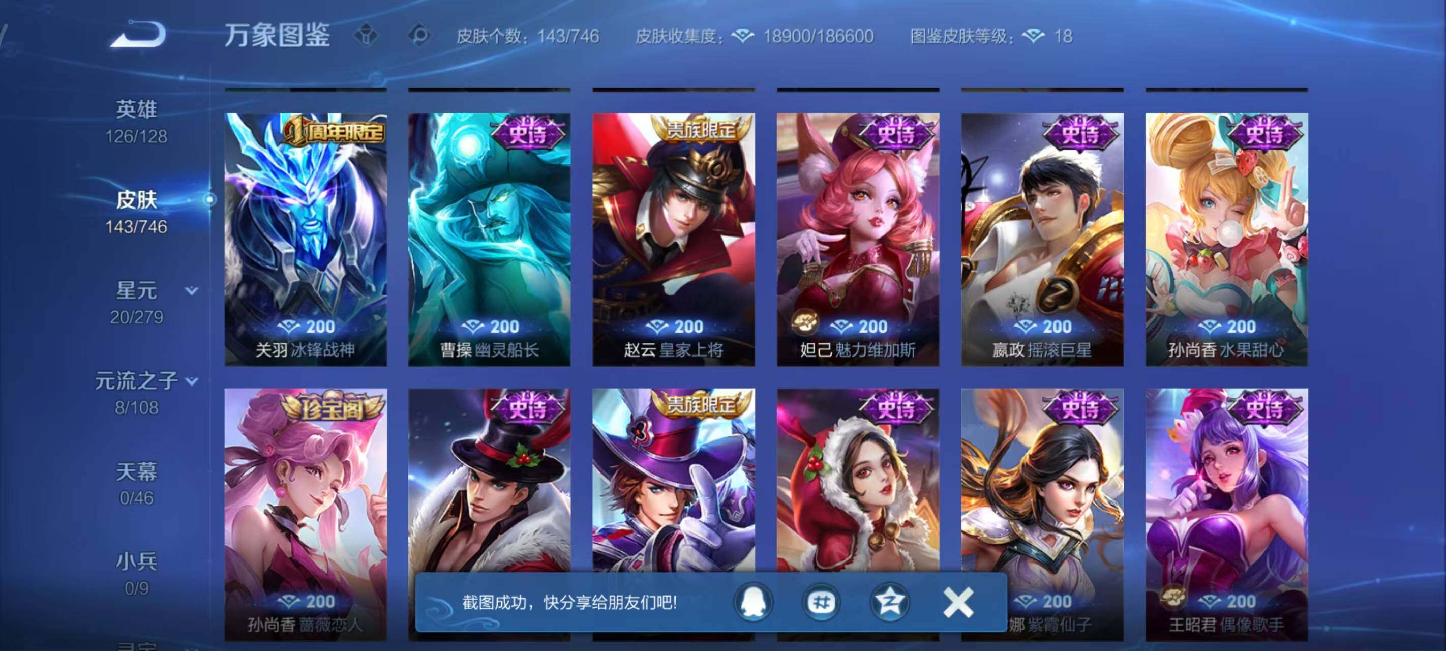 - [12944414]苹果WX-V8-尊贵铂金III段位-123英雄-305皮肤-2典藏-0珍品无双-0无双-0珍品传说-11传说-89史诗 【英雄全皮】:猪八戒全皮,蒙恬全皮 【荣耀典藏】:武则天英雄,孙悟空全息碎影,鲁班七号星空梦想 【传说皮肤】:东皇太一灼幽烈阳,李信山海炽霜斩,吕布怒海麟威,百里守约碎云,鲁班七号寅虎瑞焰,铠绛天战甲,虞姬启明星使,虞姬云霓雀翎,后羿黄金射手座,吕布天魔缭乱,狄仁杰超时空战士 【限定皮肤】:白起狰,姜子牙天穹之誓,狄仁杰阴阳师,虞姬凯尔特女王,赵云皇家上将,墨子神迹守卫,墨子降魔,妲己热情桑巴,嬴政优雅恋人,嬴政白昼王子,鲁班七号狮舞东方,鲁班七号乒乒小将,鲁班七号寅虎瑞焰,庄周高山流水,高渐离玩趣恶龙,钟无艳超时空战士,扁鹊炼金王,扁鹊奇幻香踪,白起夜都怪侠,芈月白晶晶,芈月幻夜卜梦,吕布天魔缭乱,吕布猎兽之王,周瑜赤莲之焰,元歌云间偶戏,夏侯惇朔风刀,甄姬女儿国国王,甄姬游园惊梦,甄姬落雪兰心,曹操烛龙,典韦蓝屏警告,马可波罗暗影游猎,狄仁杰魔术师,狄仁杰万华元夜,达摩星际陆战队,达摩沙漠行僧,项羽海滩派对,老夫子醍醐杖,老夫子航海奇遇记,程咬金演武夺筹,王昭君午后时光,兰陵王驯魔猎人,兰陵王金庭之子,亚瑟潮玩骑士王,孙悟空美猴王,孙悟空至尊宝,孙悟空孙行者,牛魔御旌,后羿圣弓游侠,李元芳银河之约,李元芳云中旅人,虞姬启明星使,钟馗神迹守卫,钟馗驱傩正仪,杨玉环遇见飞天,杨戬潮玩骑兵,女娲朔望之晖,干将莫邪真爱魔法,雅典娜单词大作战,雅典娜黎明之约,蔡文姬繁星吟游,太乙真人饕餮,鬼谷子原初探秘者,鬼谷子五谷丰年,黄忠烈魂,黄忠火炮绅士,苏烈千军破阵,百里玄策原初追逐者,弈星混沌棋,梦奇顽趣,沈梦溪星空之诺,沈梦溪大漠名商,明世隐疑决卦,明世隐吟游魔法,裴擒虎李小龙,裴擒虎擒涛扼浪,狂铁电玩高手,米莱狄御霄,米莱狄胡桃异想国,云中君纤云弄巧,李信山海炽霜斩,伽罗天狼溯光者,盾山御銮,猪八戒西部大镖客,猪八戒猪悟能,上官婉儿梁祝,嫦娥拒霜思,嫦娥暖冬兔眠,西施玲珑珍味,蒙犽狂想玩偶喵,鲁班大师探海日志,桑启海盐诗旅,暃星界游侠,戈娅驭风魔法,阿古朵江河有灵,张良古海寻踪,蒙恬荣光圣徽,鬼谷子天穹祈灯,刘邦剑破天穹 【年限皮肤】:孙悟空美猴王,鲁班七号寅虎瑞焰,黄忠烈魂,李信山海炽霜斩 【赛季限定】:扁鹊炼金王,白起狰,夏侯惇朔风刀,曹操烛龙,狄仁