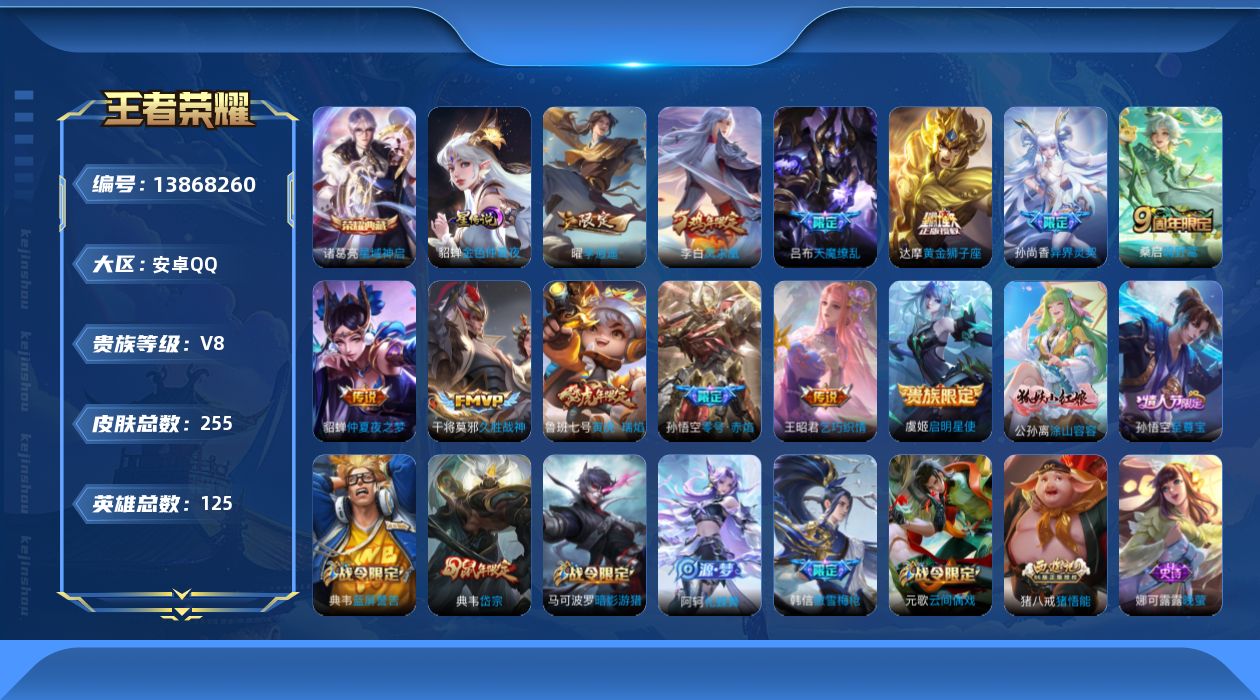 [13868260]安卓Q-V8-255皮肤-1典藏-12传说-72史诗