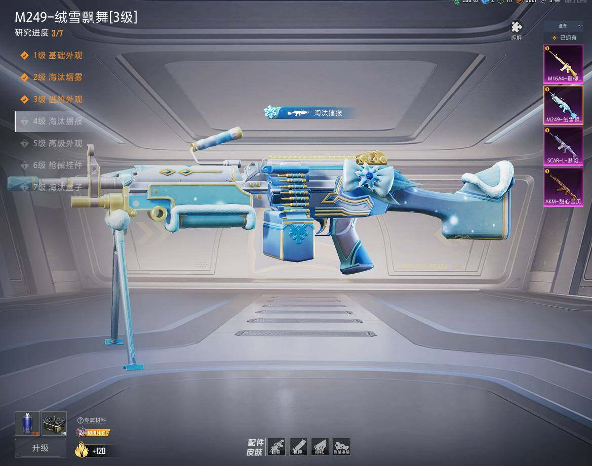 AKM-甜心宝贝,M16A4-垂柳戏鸭,SCAR-L-梦幻火箭,M249-绒雪飘舞