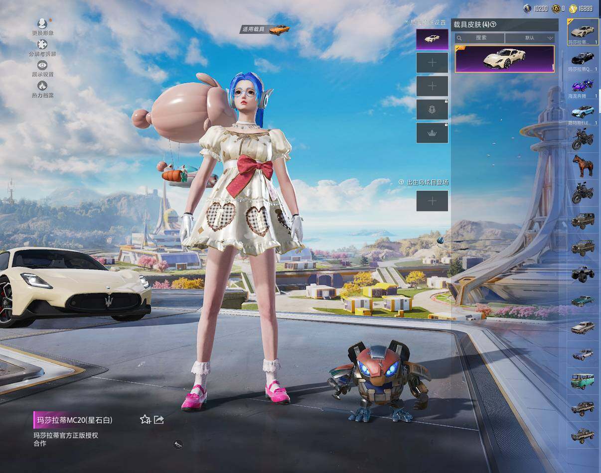 【粉色载具】:路特斯ELETRE(冰川蓝),玛莎拉蒂MC20(星石白),玛莎拉蒂Quattroporte(夜幕蓝),海龙奔腾,僚机-萌兔起飞