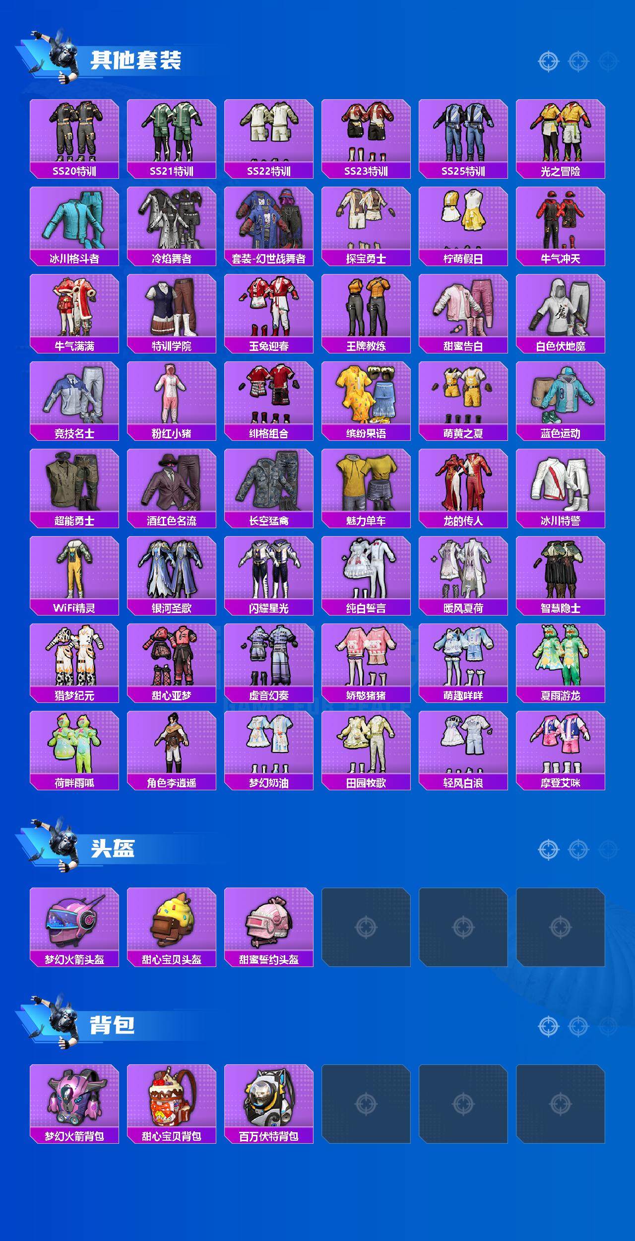 【粉色套装】:粉装-宝贝奶油派,粉装-天使彩虹糖,粉装-梦幻火箭,粉装-冰霜白皇,粉装-童趣迷兔,粉装-海盐物语,粉装-傲雪凌霜,粉装-霁雪冰心,粉装-彩虹甜喵