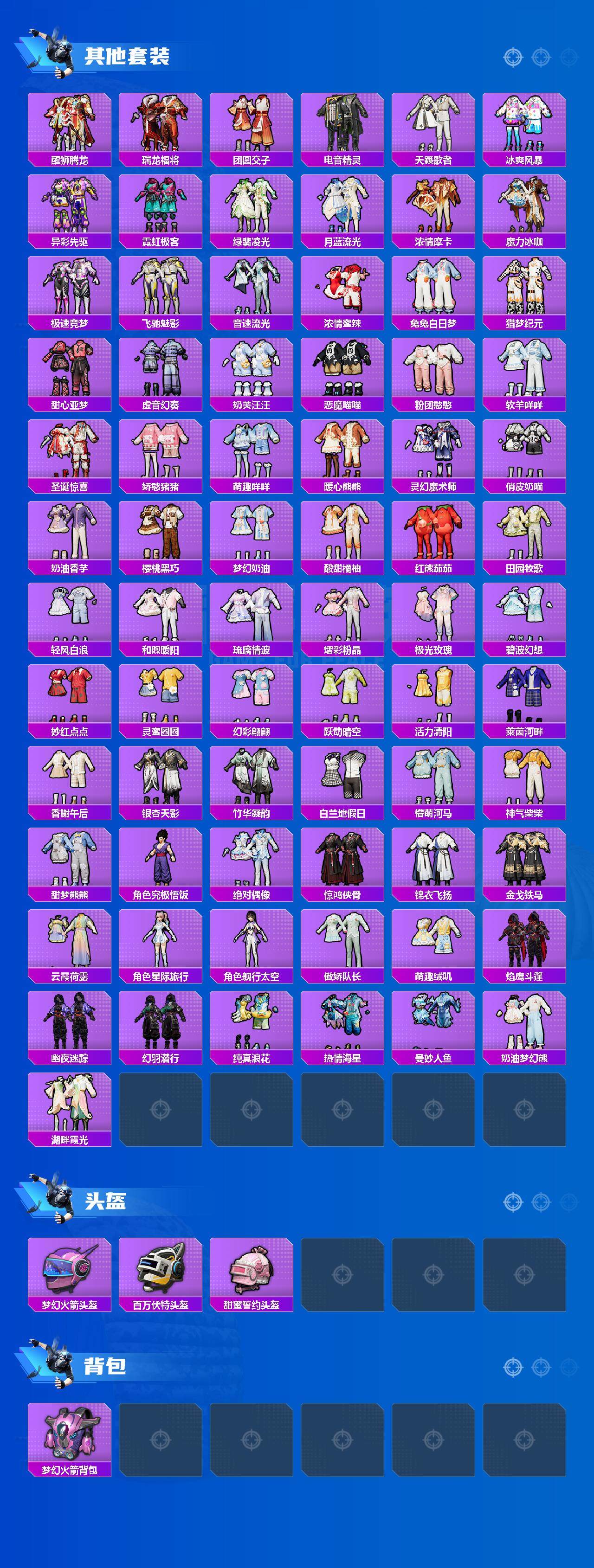 【粉色套装】:粉装-宝贝奶油派,粉装-梦幻火箭,粉装-缤纷油彩,粉装-放客神游,粉装-新星烈龙,粉装-花间之火,粉装-冰霜白皇,粉装-童趣迷兔,粉装-炙焰红王,粉装-蜜桃特工,粉装-彩虹鹿灵,角色-洛天依,粉装-黄伞悠悠,粉装-黑伞漫漫,粉装-精灵娃娃,粉装-筑梦精灵,粉装-傲雪凌霜,粉装-霁雪冰心,粉装-旋转彩虹,粉装-冰川幽秘,粉装-冰川红玫,粉装-霞光圣骑,粉装-寒光使者,粉装-第五大道,粉装-雪梅暗香,超级赛亚人-孙悟空,角色-呆萌星弥,粉装-闲梦青缨,角色-美雪,角色-鸢尾晶梦,粉装-金丰海韵,角色-千金淑猫,粉装-星穹咏叹调