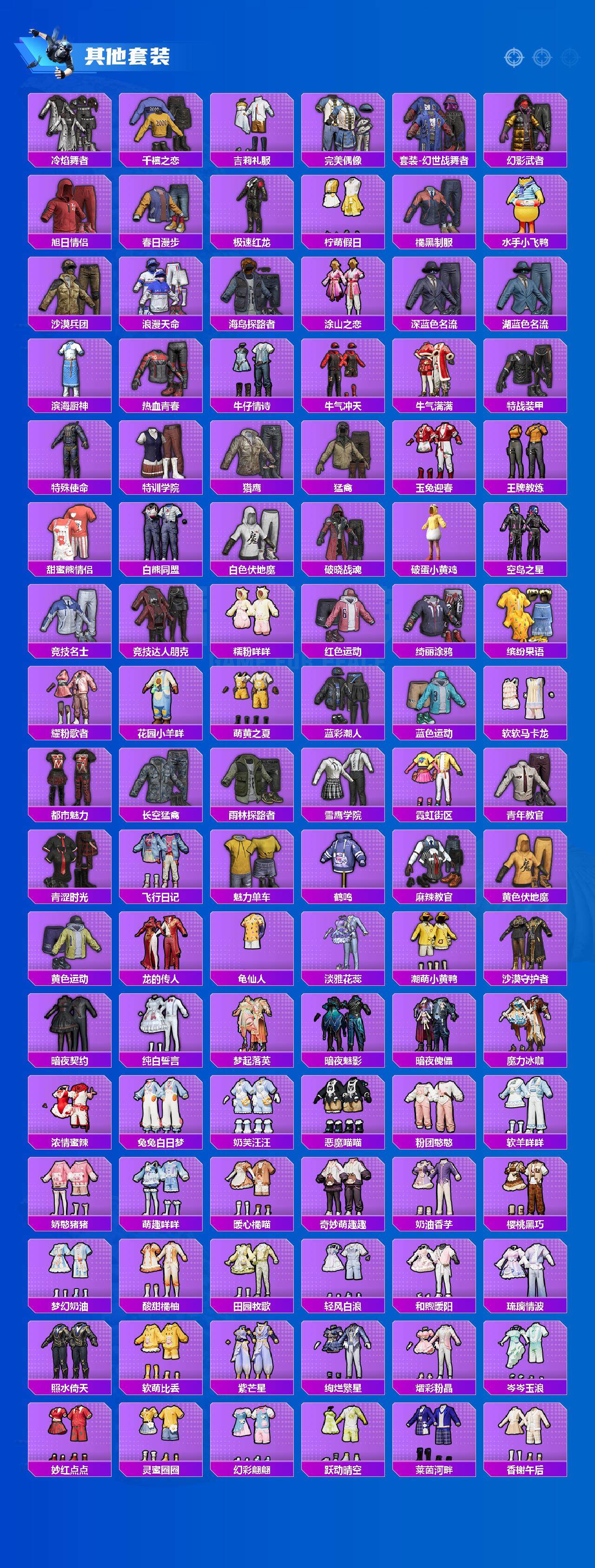 【稀有套装】:套装-龟仙人,套装-航行童话,套装-绒宝小鹅,套装-巳巳如意,套装-雏菊兔兔,套装-萝兰蝴蝶,套装-糖糖葫芦,套装-青团波波,套装-棉花软糖,角色-都市丽猫,套装-燕燕于飞,套装-鱼渊荷华,套装-雪夜云雾,套装-晨曦轻云,套装-粉恋花,套装-紫幽梦,套装-蓝冰羽,角色