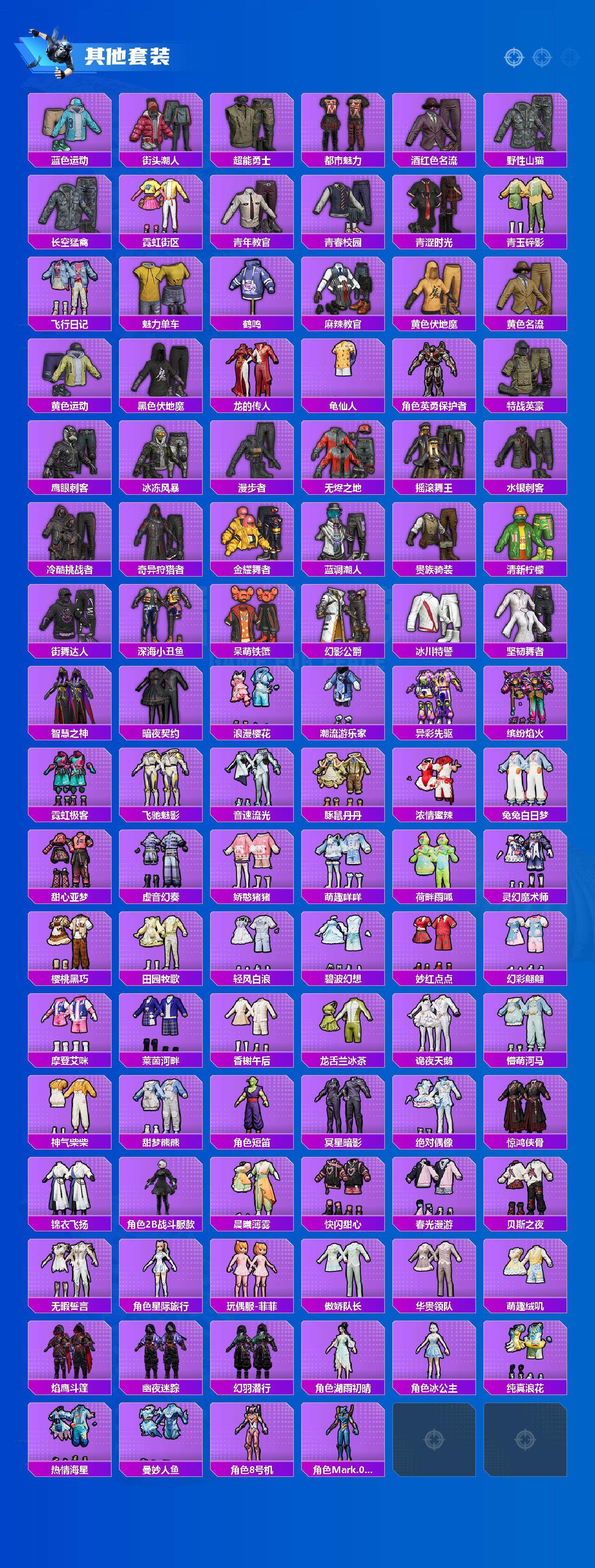 套装-浪漫天命,套装-龟仙人,套装-暗影哥特,角色-8号机,角色-Mark.06,套装-极速红龙,套装-狂沙舞者,角色-英勇保护者,套装-漫步者,套装-水银刺客,套装-暗夜契约,套装-豚鼠丹丹