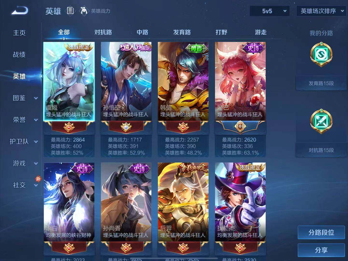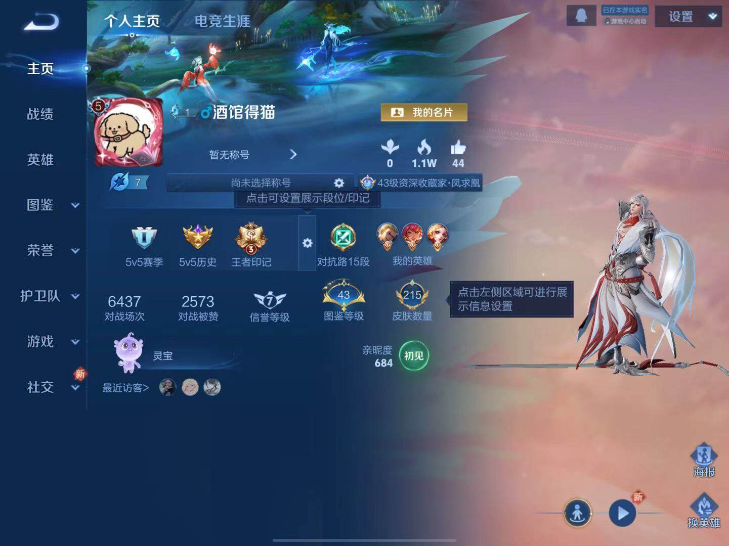 - PX_2104394-贵族等级: V7 英雄数: 121 皮肤数: 196 传说皮: 久胜战神,一念神魔 限定皮: 遇见飞天,李小龙,梁祝,时雨天司,龙胆,武圣,岱宗,神威,天狼狩猎者,天狼运算者,高山流水,补天,无尽星芒,五谷丰年 亮点: 【店长推荐精品号】热门限定皮时雨天司武圣岱宗神威补天无尽星芒 2个性按键 200+玫瑰 积分夺宝200次