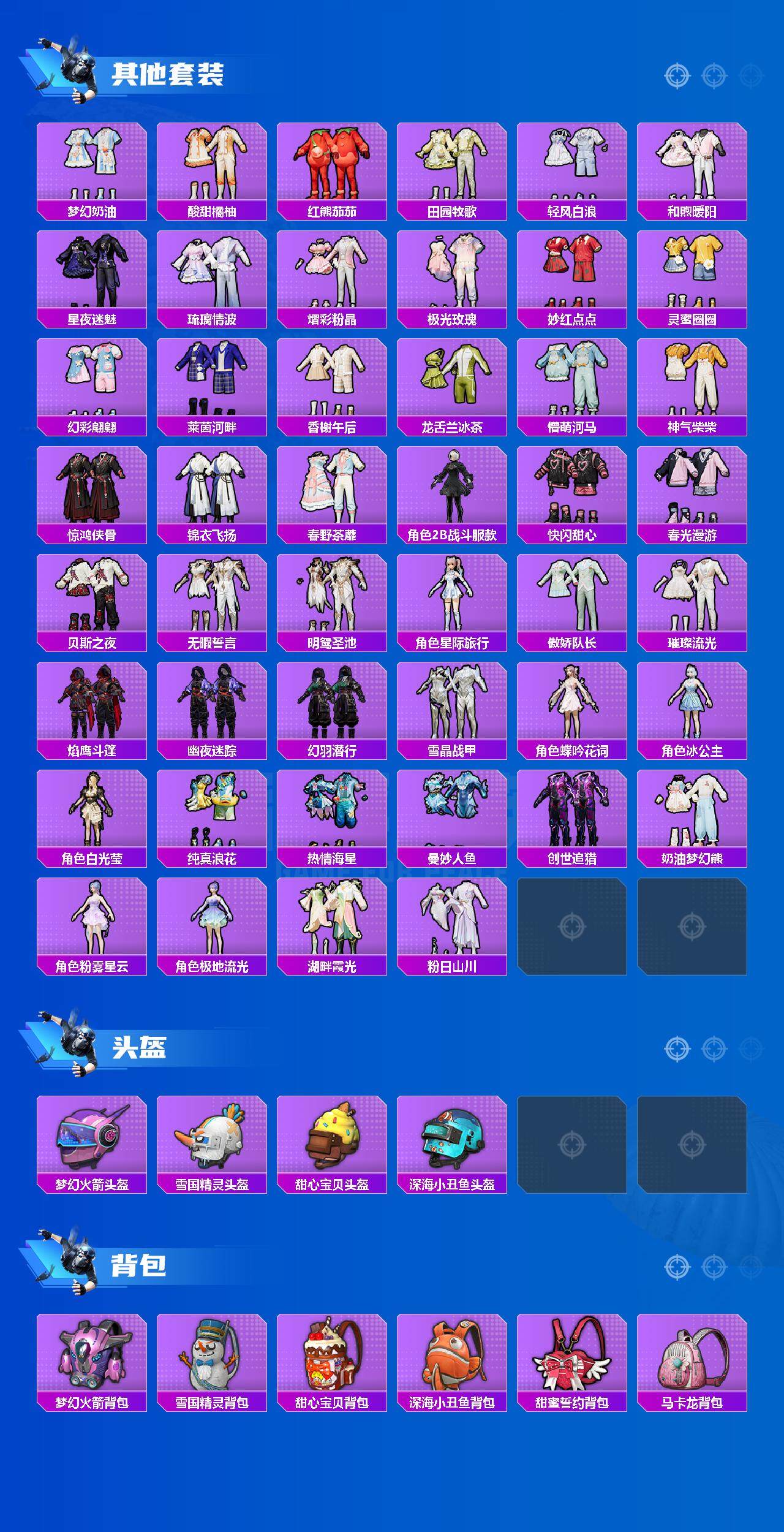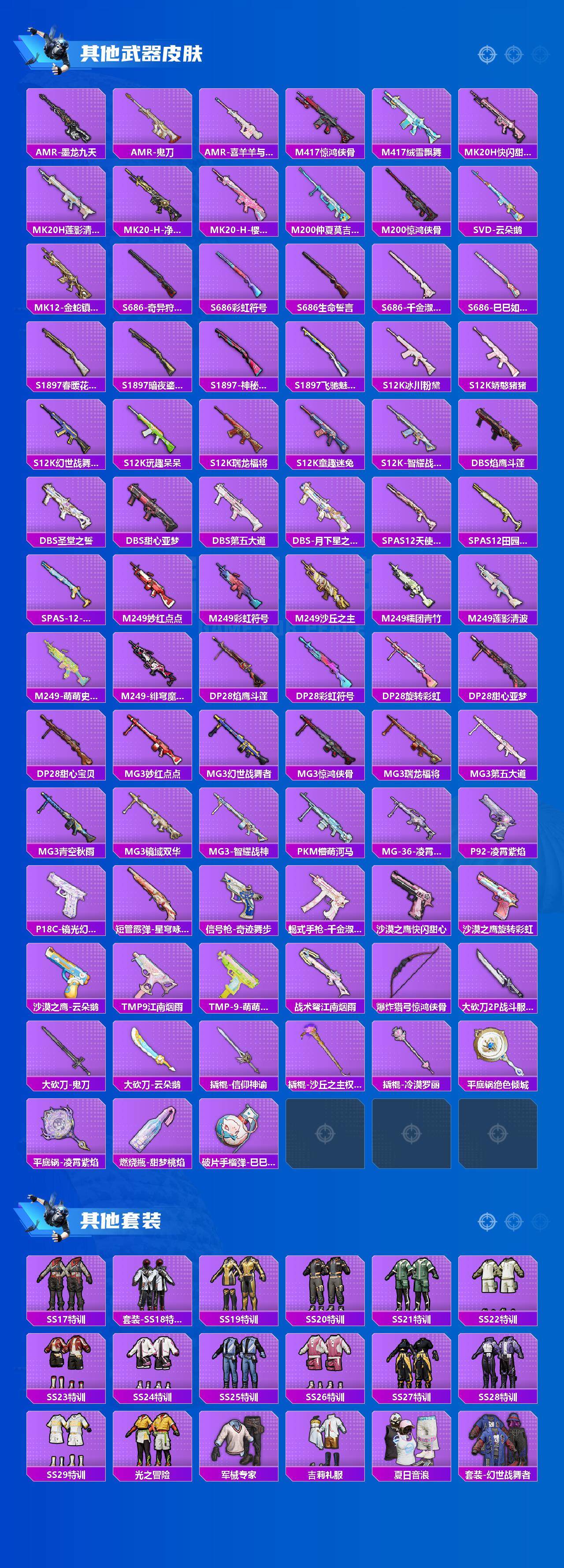 [13868495]安卓 手Q-1神装-50粉装-20特效枪-10载具-28粉色飞行器-163896热力值-18王牌印记-291套装-382枪皮 【红色神装等级】:盛世惊鸿-云鸾(二级) 【红色角色神装】:盛世惊鸿-云鸾 【热门品类】:粉装-雪国幻梦,粉装-梦幻火箭,粉装-童趣迷兔,粉装-缤纷油彩,套装-浪漫天命,套装-赤蝎幽灵,套装-都市猎人,套装-深海小丑鱼,套装-小丑鱼,套装-奇异狩猎者,套装-动感兔斯基人偶服,角色-2B战斗服款,套装-龟仙人,套装-暗影哥特,套装-粉红小猪,套装-红熊茄茄 【粉色载具】:兰博基尼Estoque(银翼灰),路特斯ELETRE(花绽灰),灵翼风驰(幻彩蓝),疾风龙骑,僚机-萌兔起飞,星梦玉骢,护世瑞兽,晶梦灵驹,黑曜夜骑,冰绡玉鳞,辉羽雀灵自行车 【粉色套装】:粉装-甜心巧克力,粉装-宝贝奶油派,粉装-天使彩虹糖,粉装-雪国幻梦,粉装-蝶舞迷情,粉装-梦幻火箭,粉装-缤纷油彩,粉装-新星烈龙,粉装-极致幻想,粉装-花间之火,粉装-冰霜白皇,粉装-童趣迷兔,粉装-炙焰红王,粉装-馨动时刻,粉装-蜜桃特工,粉装-彩虹鹿灵,角色-洛天依,粉装-吟月归客,粉装-酣梦娃娃,粉装-筑梦精灵,粉装-霁雪冰心,粉装-垂柳戏鸭,粉装-灵感创作师,粉装-千面幻镜,粉装-旋转彩虹,粉装-冰川幽秘,粉装-盖世英雄,粉装-寒光使者,粉装-第五大道,粉装-挚爱序曲,粉装-飒粉甜心,角色-茉莉星,粉装-射星猎手,角色-圣堂之誓,角色-小叽联名款,角色-绝色倾城,角色-烟云彩露,角色-严莉莉,角色-小蓝,角色-鸢尾晶梦,角色-初号机 觉醒Ver.,角色-金域紫灵,角色-千金淑猫,角色-信仰神谕,角色-樱桃泡泡,角色-幻海仙踪,粉装-星穹咏叹调,角色-狂魅哈莉,角色-荧海星豚,角色-冰魄 【粉色枪皮等级】:AKM-绿萝繁花(五级),AKM-幻海仙踪(五级),SCAR-L-童趣迷兔(七级),M416-风花雪月(七级),M416-墨龙九天(一级),GROZA-旋转彩虹(七级),AUG-圣斗士星矢(五级),UMP45-恐龙拽拽(七级),汤姆逊-热量炸弹(五级),P90-仙履奇缘(九级),P90-沙丘之主(一级),P90-冷漠罗丽(二级),Kar98K-巳巳如意(五级),Kar98K-圣域龙灵(三级),M24-镜域双华(三级),SLR-暗夜玫瑰(一级),M417-第五大道(一级),DP-