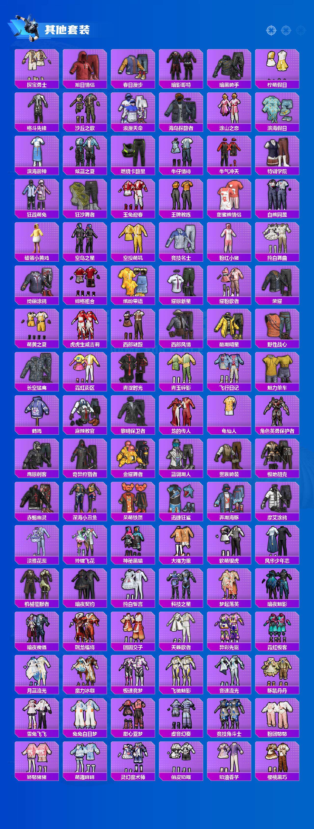 套装-浪漫天命,套装-龟仙人,套装-暗影哥特,套装-粉红小猪,套装-狂沙舞者,套装-破蛋小黄鸡,角色-英勇保护者,套装-弄潮海豚,风华少年志套装,套装-暗夜契约,套装-纯白誓言,套装-梦起落英,套装-瑞龙福将,套装-团圆交子,套装-豚鼠丹丹