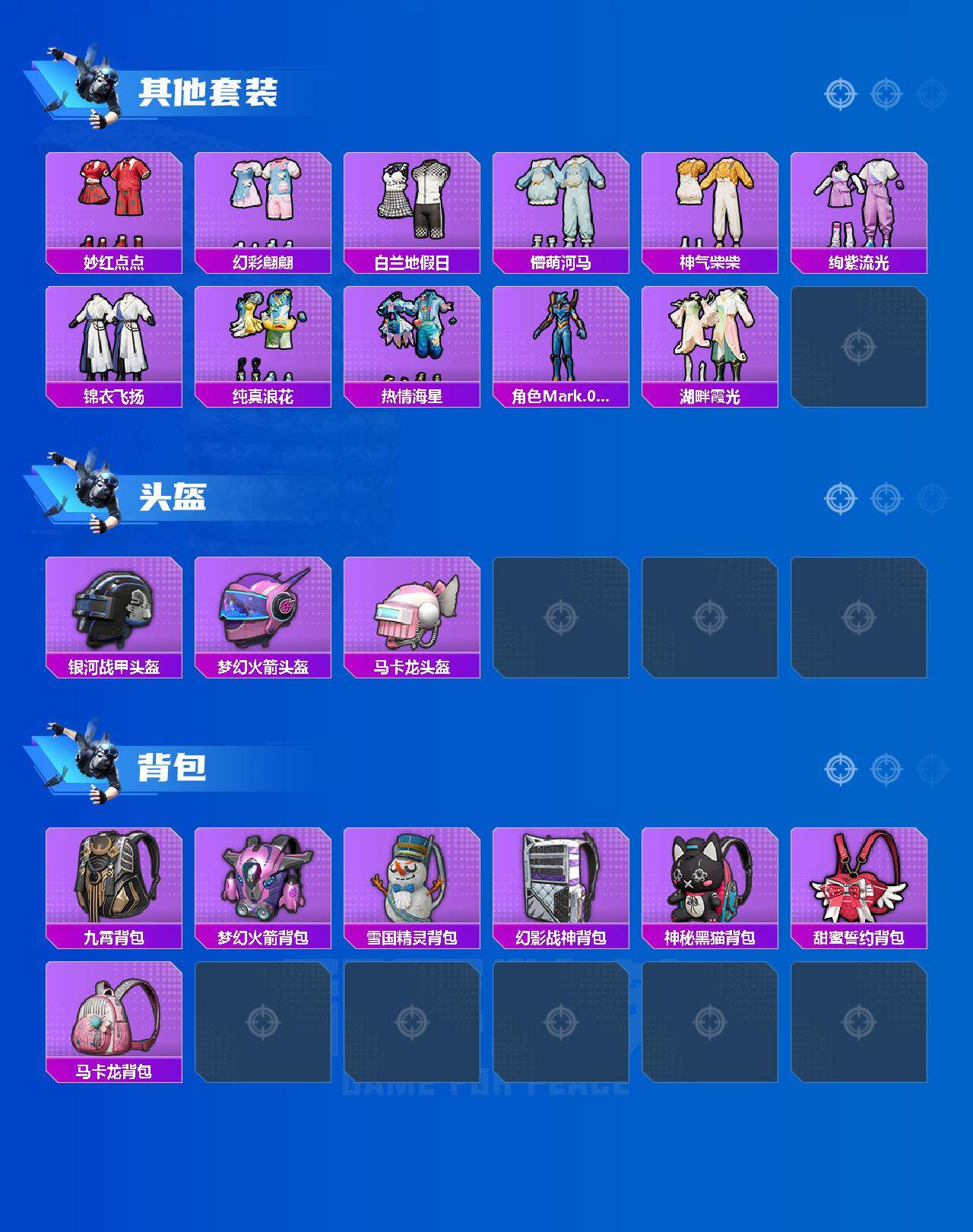 套装-粉红小猪,角色-Mark.06,套装-绯红秘境,套装-雪山精英,套装-黑色刀锋,套装-暗夜契约,套装-纯白誓言,粉甜马卡龙套装,套装-娴静芝兰,套装-冰爽海盐