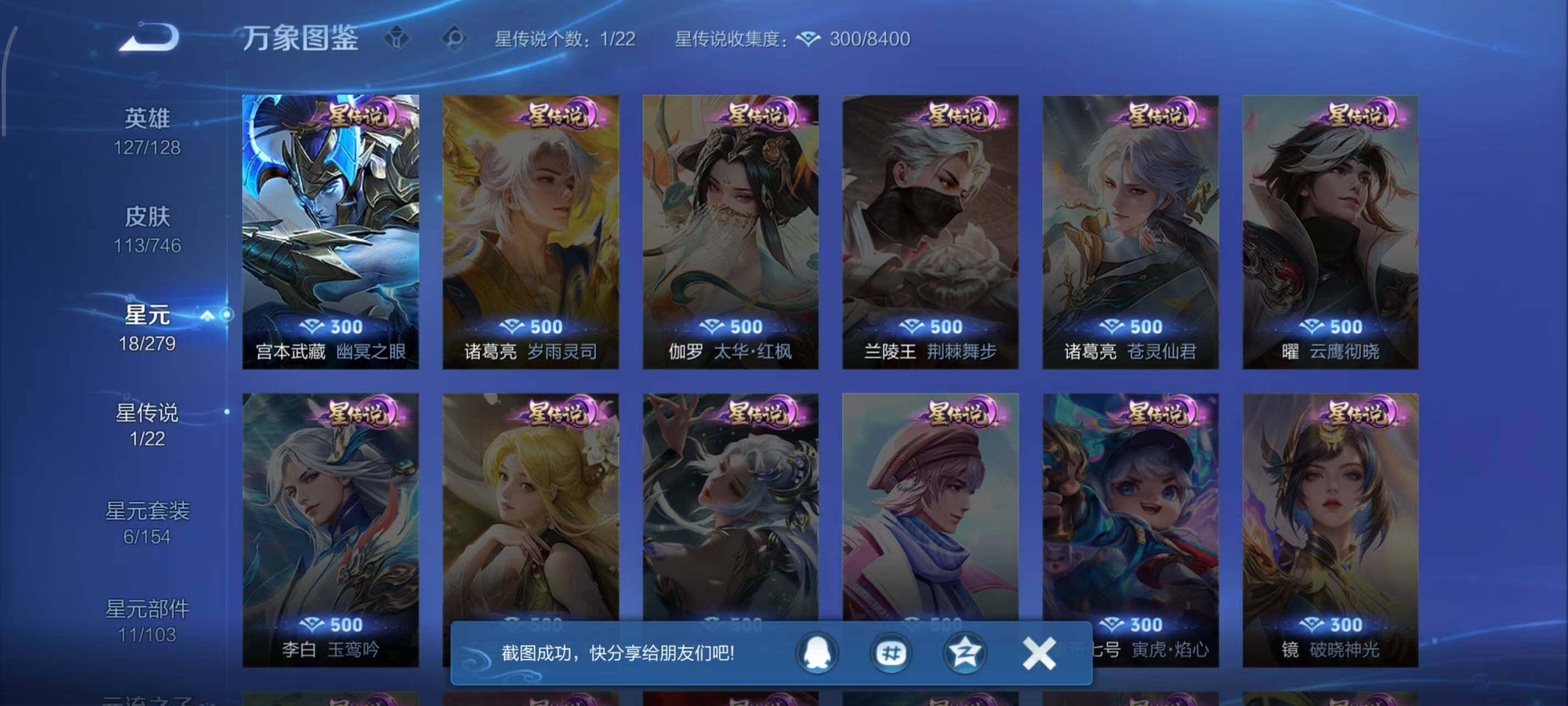 - [11609064]V10 3典藏 7无双 3珍品传说 81传说 126英雄 541皮肤 典藏英雄武则天 可修改实名 优质装备:星空梦想(太空人),真我赫兹(瑶)(瑶无双),青丘·九尾(妲己无双),碎月剑心(李白无双),神鉴启示录,小乔时之魔女(小乔无双),韩信群星魔术团(韩信无双),花合斗,拾光映像(瑶典藏),器灵·螭龙剑,江户川柯南,怪盗基德,黄金狮子座,黄金射手座,冠军飞将,云鹰飞将(小将军),久胜战神,炽阳神光,一念神魔,末日机甲-孙尚香(绿蚂蚱),地狱火,仲夏夜之梦(大飞蛾),音你心动-小乔,零号·赤焰,海洋之心,地狱之眼,音你心动-周瑜,李逍遥,乞巧织情,时之恋人-刘备(电焊工),游龙清影(小青龙),淬星耀世,超时空战士-狄仁杰,末日机甲-孙策,挚爱之约,挚爱花嫁,无双飞将,山海·炽霜斩(李信年限),山海·琳琅生(小乔年限),山海·苍雷引(电光曜子),炽翼辉光(娃娃菜牛角包),青丘·九尾,百相守梦(张飞),追逃游戏(亚瑟),追逃游戏(安琪拉),鹤羽星尊,灼幽烈阳,妄想实况,妄想奇谈,鹤归松栖(云缨),惊梅引,遇见神鼓,鲁班七号-时之奇旅,大乔-时之奇旅,霜月吟,澜逐花归海,艾琳觅芳踪,琥珀纪元铠,琥珀纪元马超,金乌负日,黄金天蝎座,云中君群星魔术团,朵莉亚心动手记,牧神诗旅,玄雷天君 珍品传说:时之奇旅-孙策 传说皮:乘龙·问璇玑(孙尚香年限),乘龙·铭钟鼎(赵云年限),乘龙·淬吴钩(孙策年限),貂蝉曦玄引,吕布曦玄引,典韦战鼓燎原,落雪白狼,铠冥王哈迪斯,幻光神枪 珍宝阁皮:妄想食味,女武神,玩趣恶龙 限定皮:愿照·九州拓(澜年限),愿照·福禄聚(蔡文姬年限),愿照·岁时盈(虞姬年限),愿照·山河定(司空震年限),愿照·众生和(妲己年限),愿照·千秋盛(女娲年限),逐霄战戟,映山客,陌上桑,鸣野蒿,夏侯惇霜北刀,至尊宝,武陵仙君(小桃花),异界灵契(白毛香),傲雪梅枪,寅虎·展翼(孙膑年限),时之彼端,魔法小厨娘,白晶晶,山海·碧波行(瑶年限),至美·乘鲤谣,至美·化雀舞,影龙天霄,遇见飞天,高山流水,诗剑行,齐天大圣,匿光决锋者,怒海麟威,五谷丰年,青龙志(铠年限),冰锋战神,幽恒(沐浴露),游园惊梦,梁祝,御风骁将(吕布年限),逐梦之星,烈魂,岱宗(典韦年限),虎魄,逐梦之音,李小龙,玄武志(苏烈年限),辉光之辰,如梦令-嫦娥,如梦令-后羿,奇迹圣诞,孙行者,猪悟