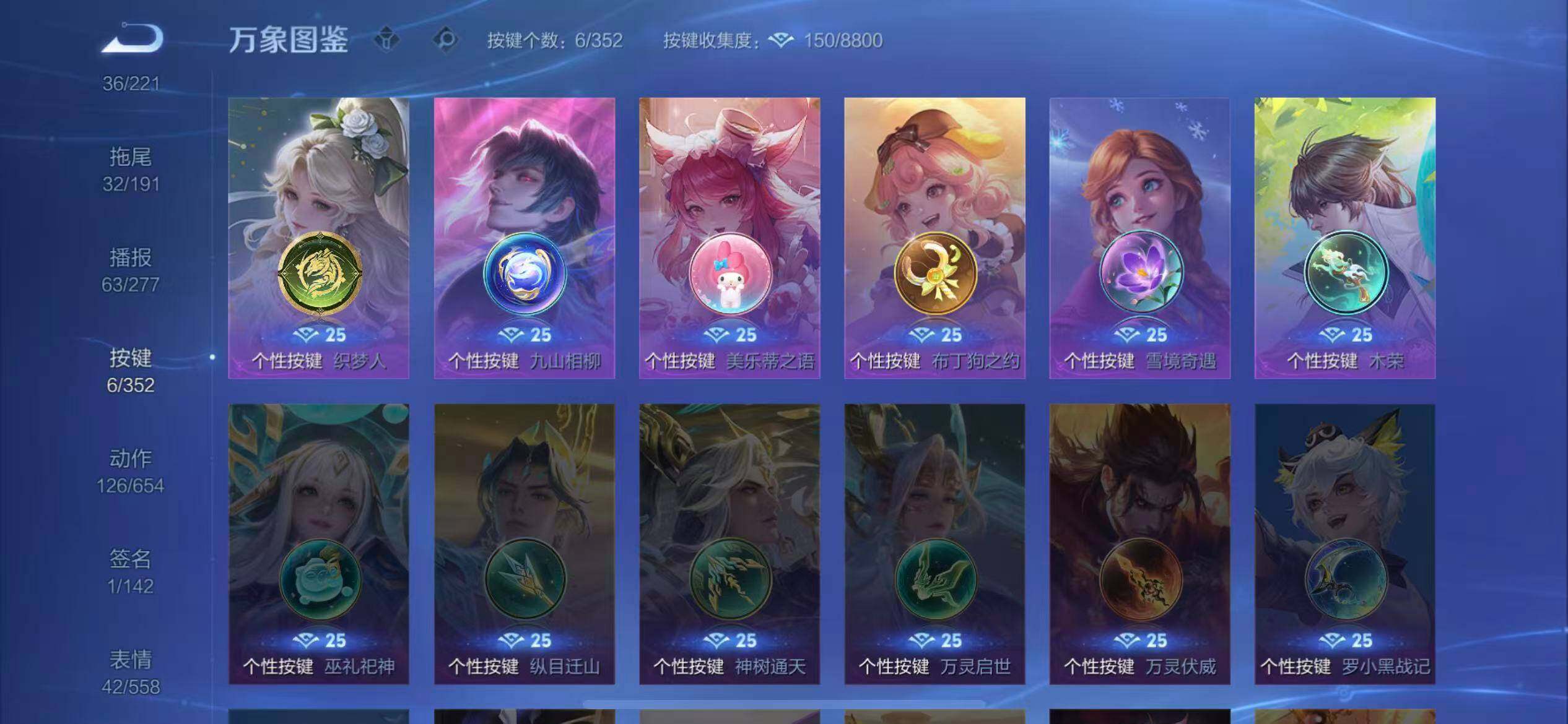 - [11578686]V6 2珍品传说 5传说 78英雄 65皮肤 可修改实名 优质装备:器灵·落星盏 珍品传说:兔狲·蓬尾 传说皮:幻光神枪 限定皮:愿照·福禄聚(蔡文姬年限),愿照·岁时盈(虞姬年限),愿照·众生和(妲己年限),愿照·千秋盛(女娲年限) 史诗皮:鸭鸭历险记-刘禅,器灵·浮梦炉,化蝶舞,龙之律动,石田雨龙,茶境仙,百相守梦-黄忠,黄金分割率,末日机甲-吕布,水果甜心,星夜王子,舞动绿茵,魅力维加斯