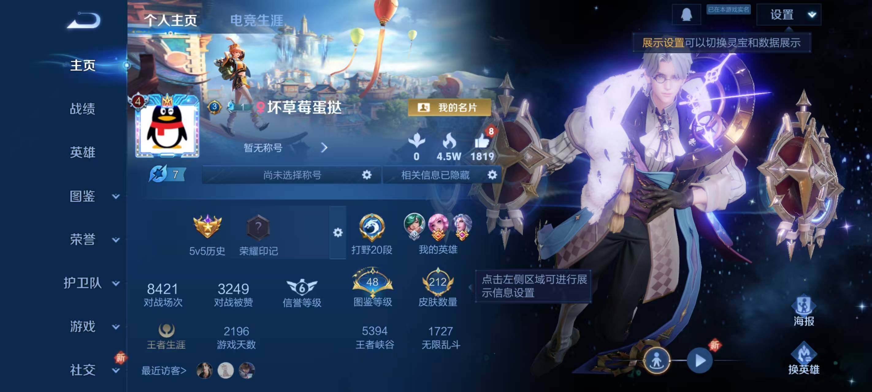 - [12023171]V10 5典藏 64传说 125英雄 526皮肤 可修改实名 优质装备:鸣剑·曳影,银白咏叹调(倪克斯侍卫),幻阙歌(貂蝉典藏),神鉴启示录,拾光映像(瑶典藏),黄金狮子座,黄金射手座,冠军飞将,绛天战甲(鸡嘴战神),猫影幻舞,久胜战神,炽阳神光,一念神魔,仲夏夜之梦(大飞蛾),音你心动-小乔,地狱之眼,胖达荣荣,时之恋人-刘备(电焊工),游龙清影(小青龙),淬星耀世,超时空战士-狄仁杰,花朝如约(花篮子),无双飞将,神器·狴犴令,山海·炽霜斩(李信年限),炽翼辉光(娃娃菜牛角包),浮生妄,追逃游戏(亚瑟),鹤羽星尊,灼幽烈阳,妄想实况,妄想奇谈,鹤归松栖(云缨),惊梅引,遇见神鼓,鲁班七号-时之奇旅,大乔-时之奇旅,永恒水手月亮,夜礼服假面,霜月吟,澜逐花归海,艾琳觅芳踪,琥珀纪元铠,琥珀纪元马超,金乌负日,黄金天蝎座,云中君群星魔术团,朵莉亚心动手记 传说皮:乘龙·问璇玑(孙尚香年限),乘龙·铭钟鼎(赵云年限),乘龙·淬吴钩(孙策年限),貂蝉曦玄引,吕布曦玄引,典韦战鼓燎原,落雪白狼,云诺千山 珍宝阁皮:妄想食味,优雅恋人,蔷薇恋人 限定皮:逐霄战戟,至尊宝,武陵仙君(小桃花),异界灵契(白毛香),傲雪梅枪,补天,寅虎·展翼(孙膑年限),星穹之声,白鹤梁神女,白晶晶,至美·乘鲤谣,至美·化雀舞,影龙天霄,遇见飞天,高山流水,诗剑行,无限倾心-虞姬,匿光决锋者,怒海麟威,降魔,五谷丰年,青龙志(铠年限),冰锋战神,天狼运算者,游园惊梦,梁祝,御风骁将(吕布年限),龙胆,逐梦之翼,逐梦之星,烈魂,岱宗(典韦年限),天狼溯光者,天狼征服者,李小龙,逐梦之影,朱雀志(守约年限),如梦令-后羿,霸王别姬-虞姬,孙行者,猪悟能,一生所爱,大圣娶亲,引擎之心,天魔缭乱,云端筑梦师,乒乒小将,热情桑巴,神奇女侠,美猴王,女儿国国王,寅虎·御盾(廉颇年限),寅虎·心曲(虎婆),百木心枪,玉兔公主,无尽星芒,唐三藏,枫霜尽,匿光启智者,神器·万象笔,梦圆繁星 史诗皮:鸭鸭历险记-刘禅,化蝶舞,灵蛊蚀心,星界战将,龙之律动,雪豹·霜爪,石田雨龙,百相守梦-周瑜,茶境仙,怒海争锋,芈月浮光幕影,海诺心动手记,琥珀纪元伽罗,夜落电台,决胜骁骑,上官婉儿群星魔术团,奇遇星旅,蔬乡物语(鲁班七号),超元猎域,乘龙·聚宝船(安琪拉年限),乘龙·忆丹青(大乔年限),百相守梦-黄忠,遇见神鹿,紫