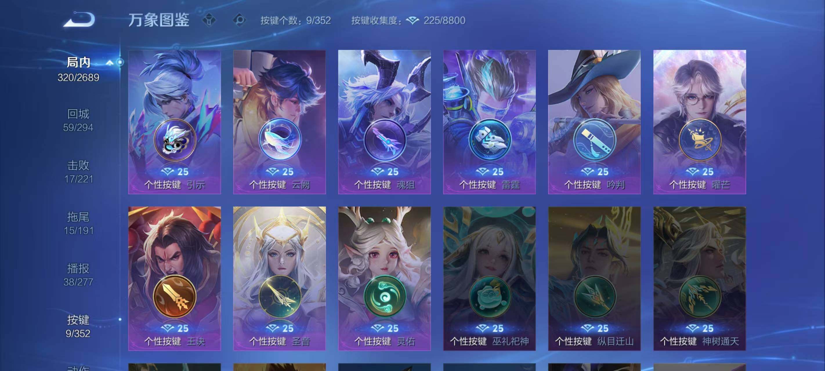 裴擒虎李小龙,公孙离祈雪灵祝,马超神威,项羽霸王别姬,露娜一生所爱,花木兰青春决赛季,庄周云端筑梦师,孙尚香异界灵契,镜匿光追影者,露娜启示之音,桑启鸣野蒿