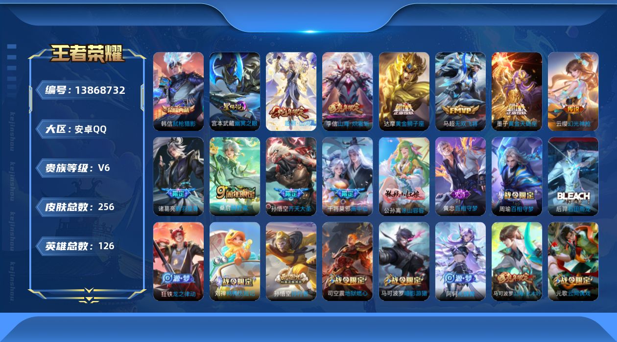 [13868732]安卓Q-256皮肤-1典藏-10传说-80史诗