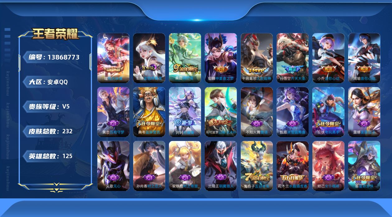 [13868773]安卓Q-232皮肤-1典藏-6传说-50史诗