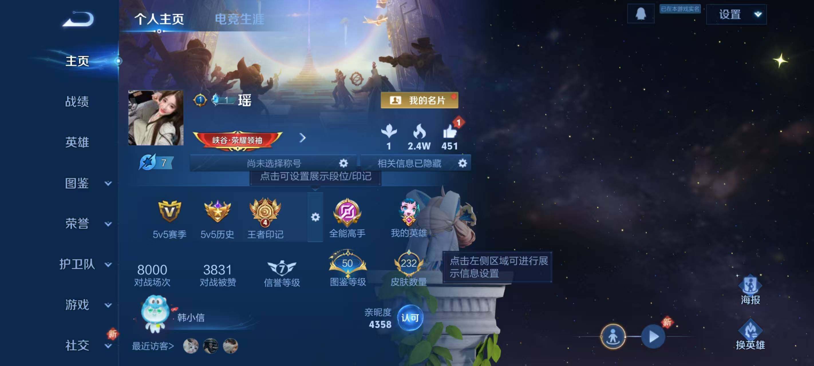 - PX_2093857-实名: 可修改 贵族等级: V7 英雄数: 103 皮肤数: 113 传说皮: 绛天战甲,灼幽烈阳,遇见神鼓,霜月吟,琥珀纪元铠 限定皮: 引擎之心,美猴王,孙行者,猪悟能,齐天大圣,夏侯惇霜北刀,逐霄战戟