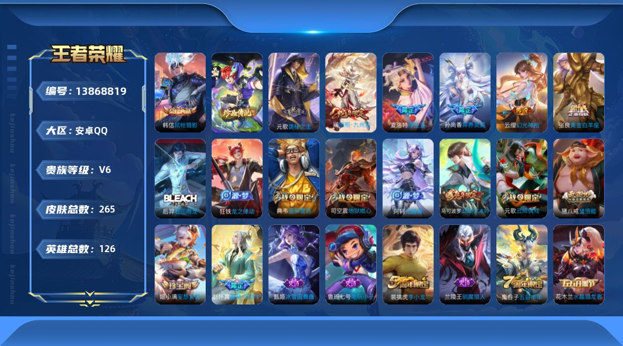 [13868819]安卓Q-V6-265皮肤-1典藏-1珍品传说-6传说-64史诗