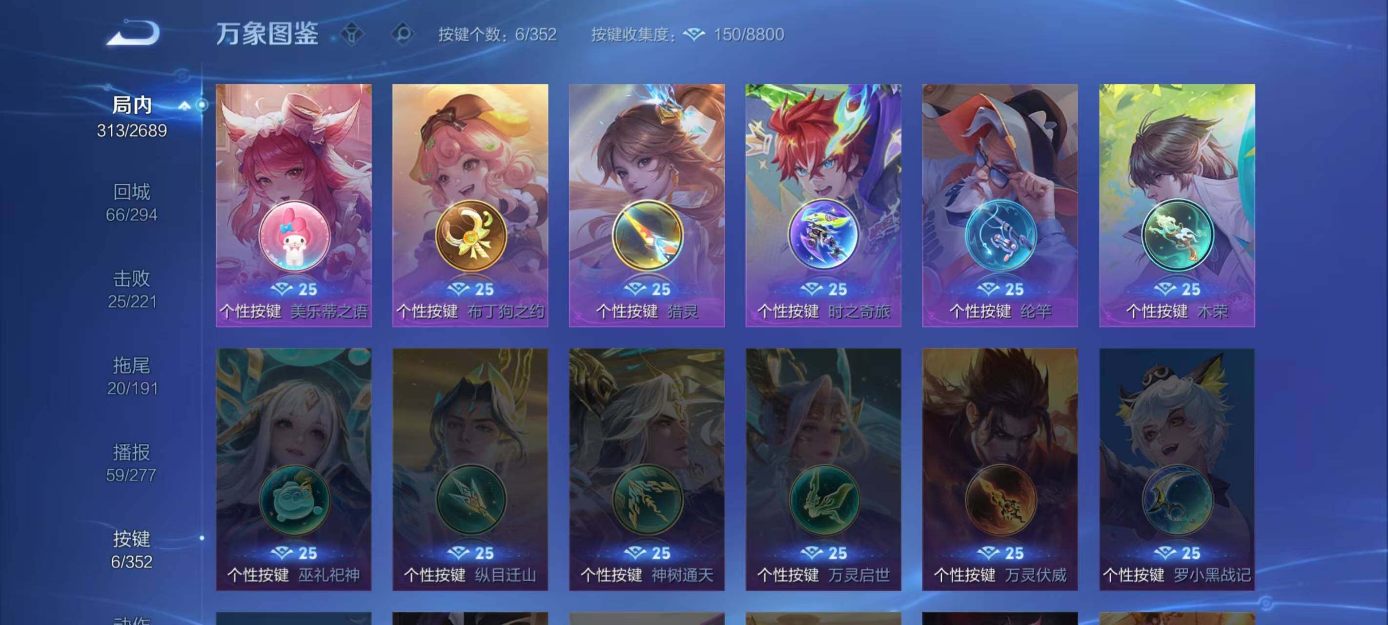 太乙真人饕餮,曹操烛龙,芈月重明,典韦穷奇,狂铁御狮,米莱狄御霄,牛魔御旌,盾山御銮,夏侯惇朔风刀,明世隐疑决卦,老夫子醍醐杖,鬼谷子原初探秘者,狄仁杰万华元夜,程咬金演武夺筹,钟馗驱傩正仪,苏烈千军破阵,吕布猎兽之王,嬴政白昼王子,女娲朔望之晖,典韦蓝屏警告,钟馗神迹守卫,鲁班七号狮舞东方,沈梦溪星空之诺,李元芳银河之约,元歌云间偶戏,弈星混沌棋,达摩沙漠行僧,兰陵王金庭之子,沈梦溪大漠名商,李元芳云中旅人,桑启海盐诗旅,裴擒虎擒涛扼浪,鲁班大师探海日志,张良古海寻踪